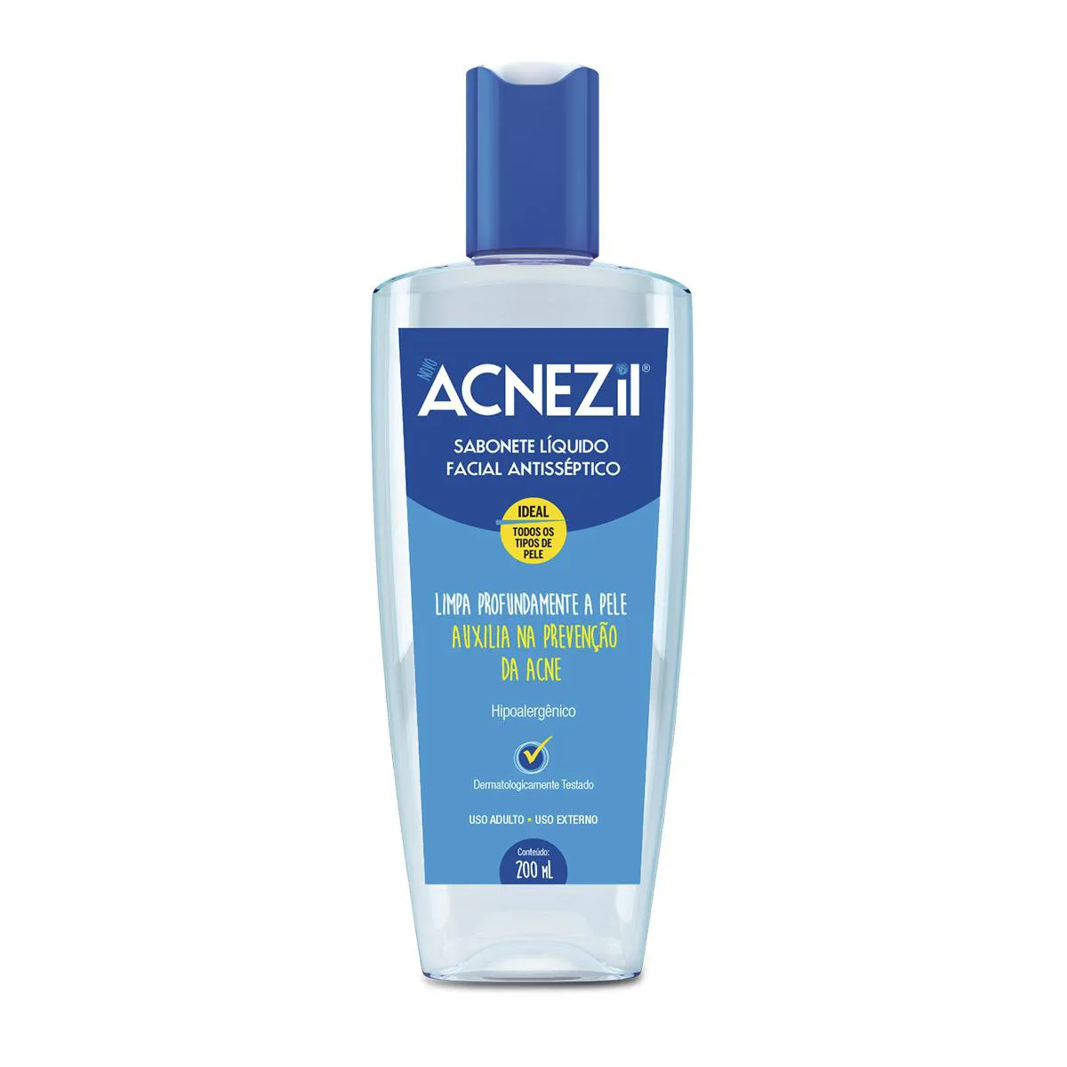 O Sabonete Líquido Facial Acnezil é um sabonete ideal para todos os tipos de Pele, principalmente as acneicas. Sua potente fórmula antiacne elimina as células mortas e ainda auxilia no controle da oleosidade da pele.