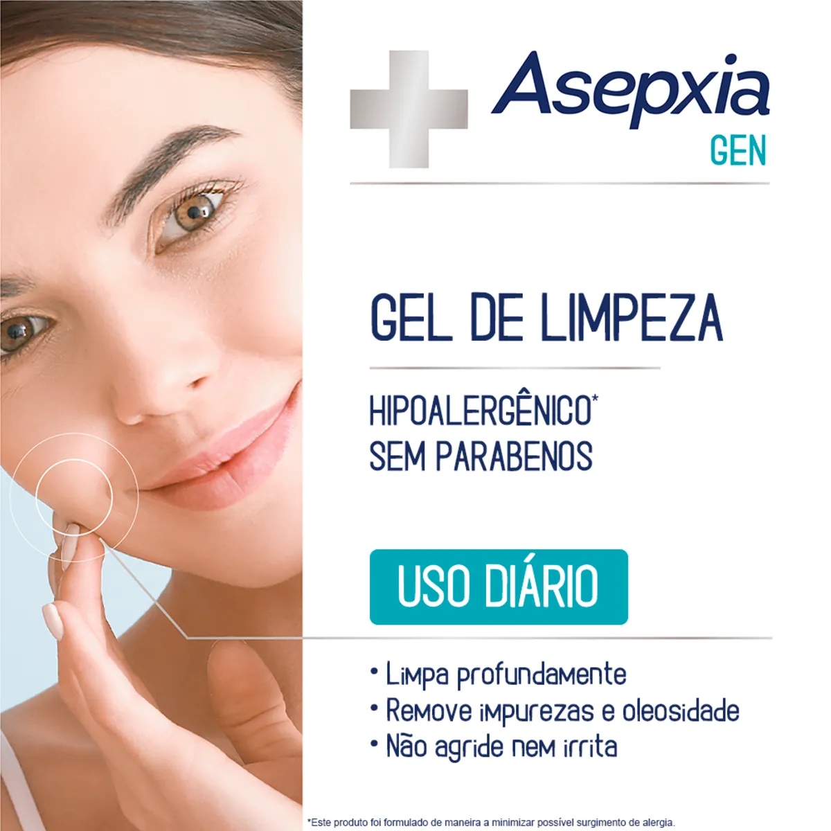Indicado para Pele oleosa e com brilho, o gel de limpeza facial Asepxia Gen limpa e purifica, controlando a oleosidade e o brilho e também ajudando a remover impurezas e oleosidade se, agredir ou ressecar a pele.