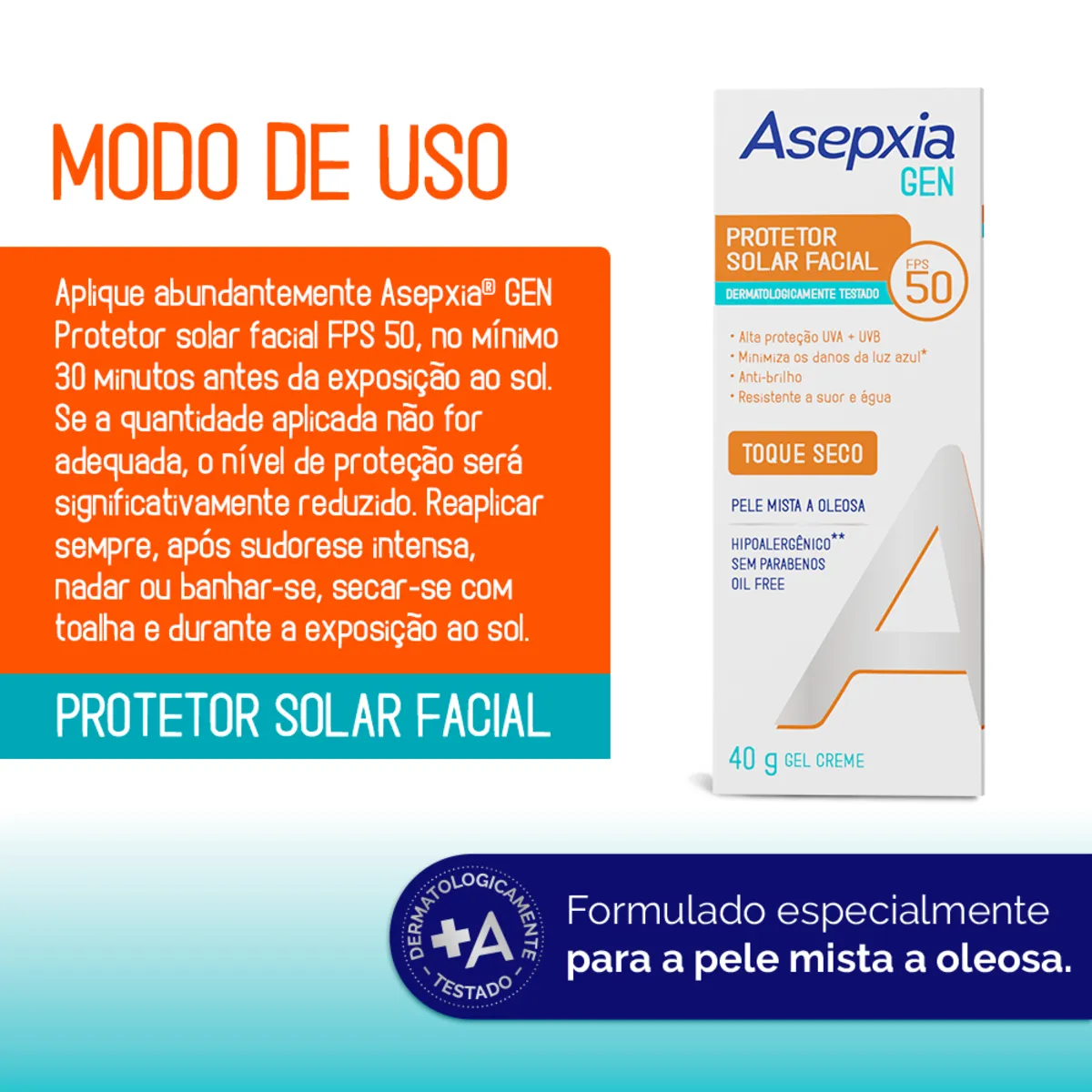 Protetor Solar Facial Asepxia Gen FPS 50 40g