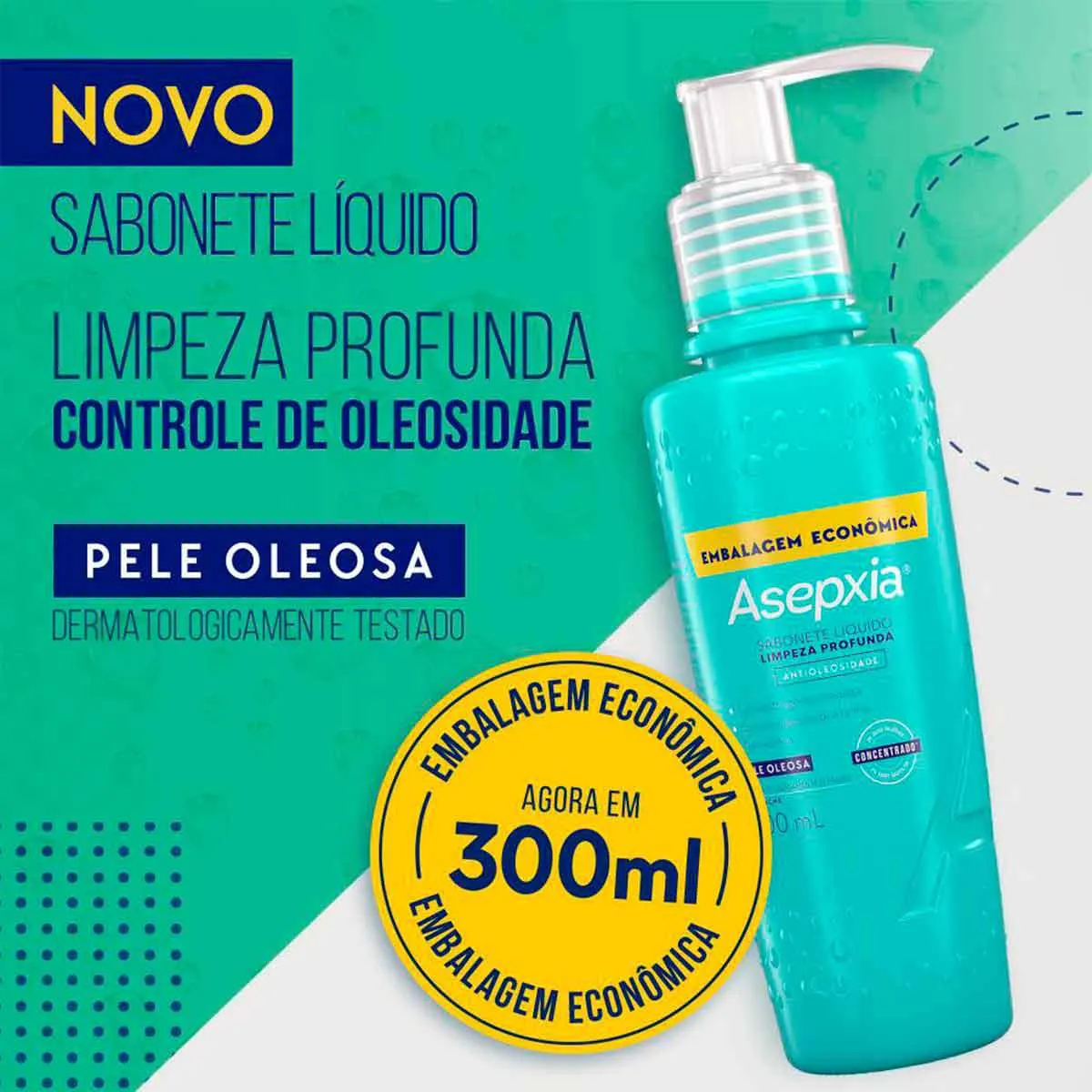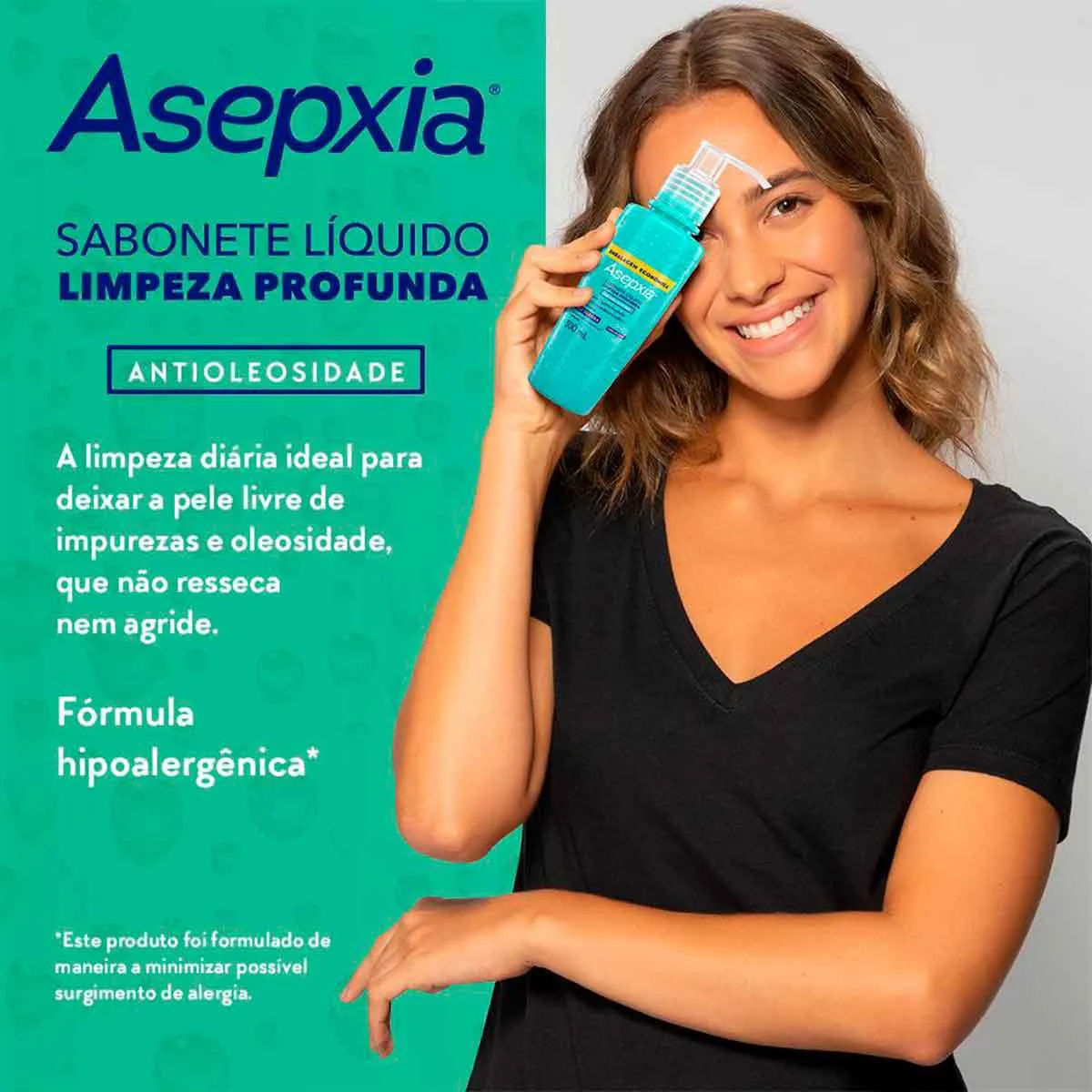 Além disso, Asepxia Limpeza Profunda é um produto hipoalergênico, para reduzir o risco de desenvolver alergias e dermatologicamente testado para garantir a segurança da sua rotina diária de Cuidados com a Pele.