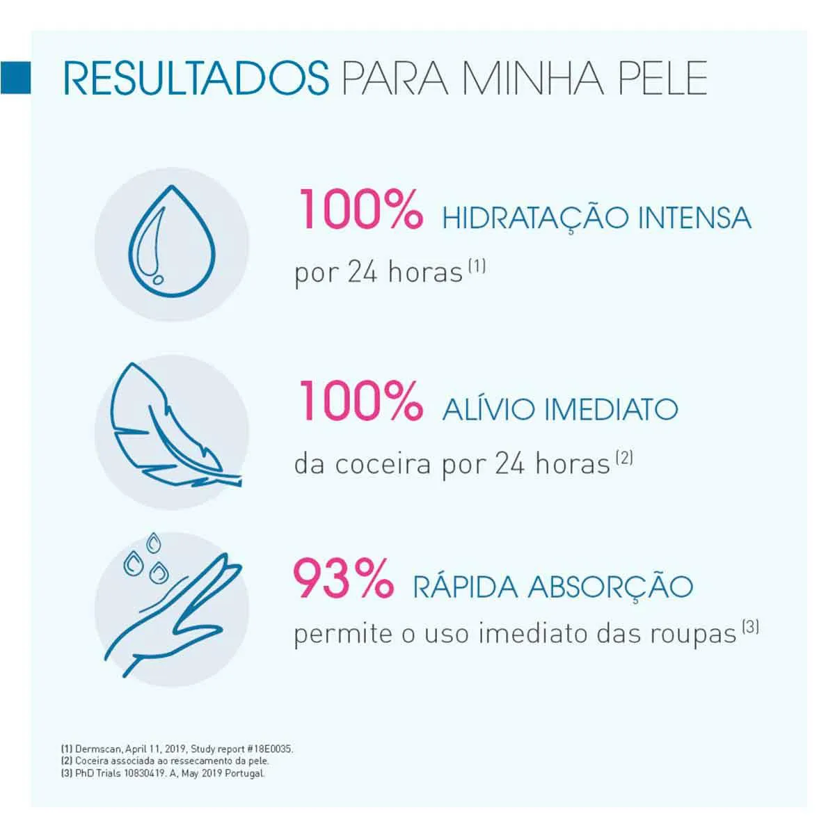 Com textura leve, não colante e de rápida absorção, seu uso mantém a Pele hidratada e protegida por 24 horas, além de acalmar a coceira de forma imediata.