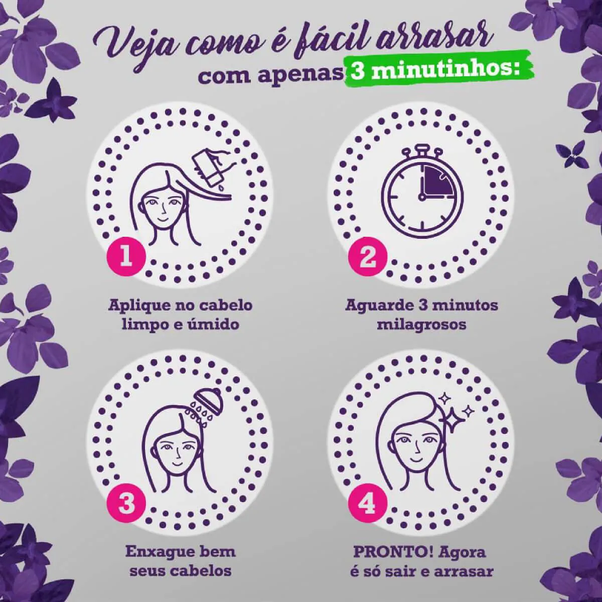 Formulado com ingredientes exóticos e milagrosos, seu uso promove um tratamento profundo que age em 3 minutos, proporcionando até 10 vezes mais força para seu cabelo, deixando-o hidratado, com menos quebra e com força para crescer.