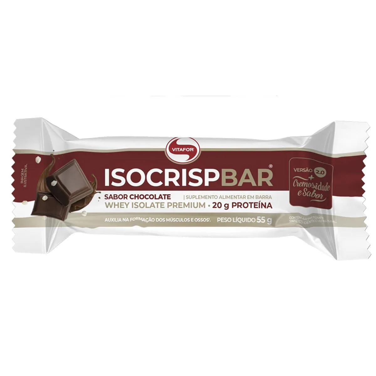 O que é: A Barra de Proteína Isocrisp Chocolate é um suplemento alimentar em barra, com baixo teor de sódio, formulado com Whey Isolate e ISOCRISP.