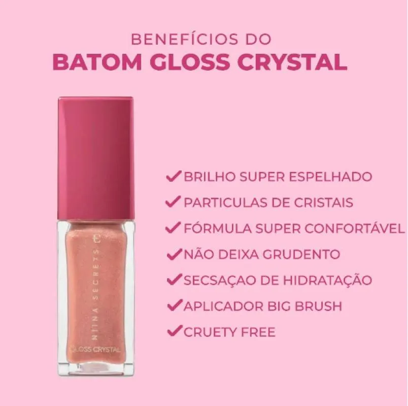 Com textura e cor inspiradas no brilho dos cristais, o Gloss Crystal Niina Secrets não pode faltar no nécessaire de quem ama um produto de maquiagem que te deixa linda e ainda cuida da sua Pele!