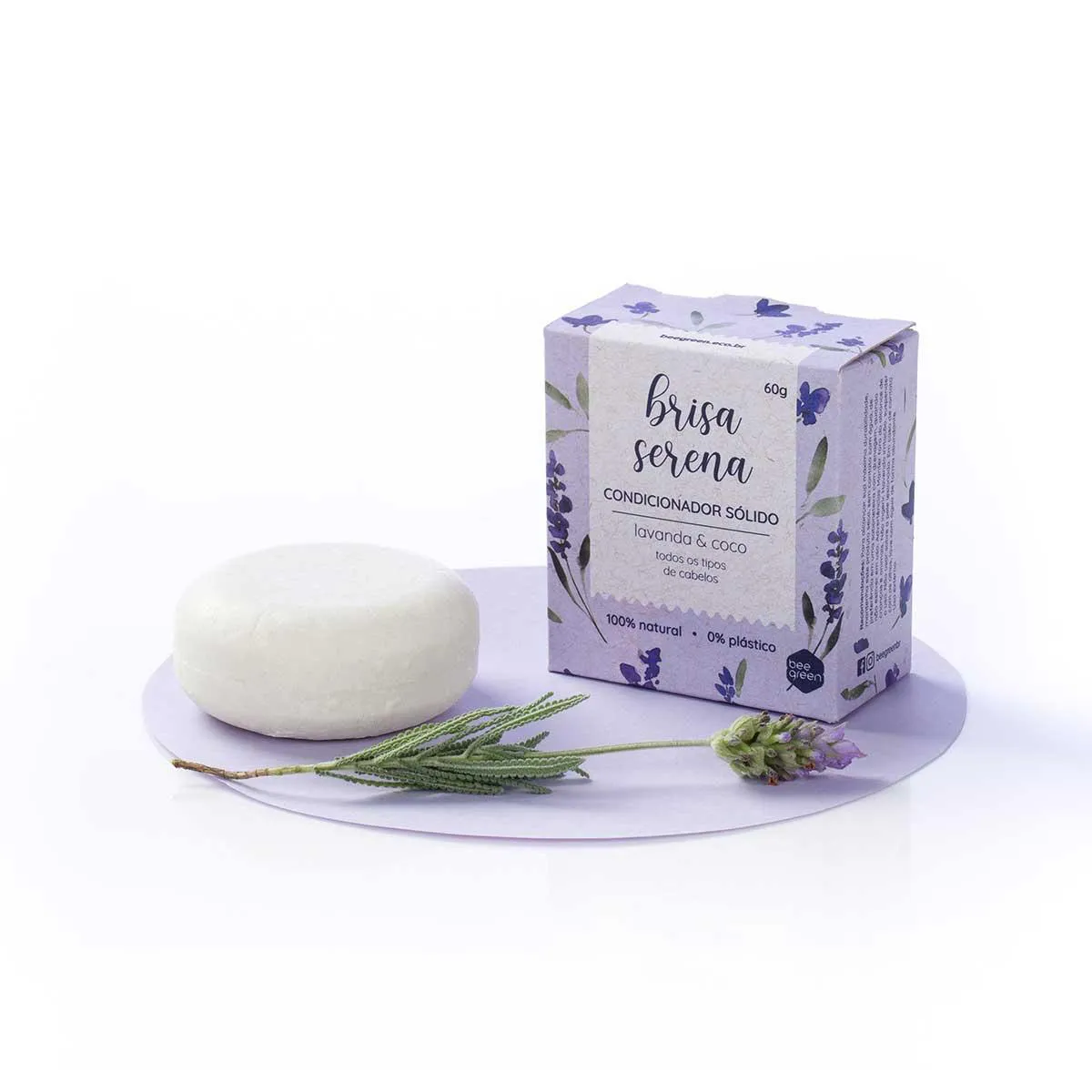 O Condicionador em Barra Beegreen Brisa Serena possui a lavanda e o coco como aroma e outros componentes que hidratam e auxiliam na redução de frizz dos cabelos.