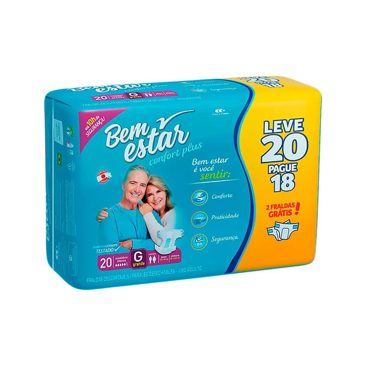 Fralda Adulto Bem Estar Confort Plus G 20 unidades
