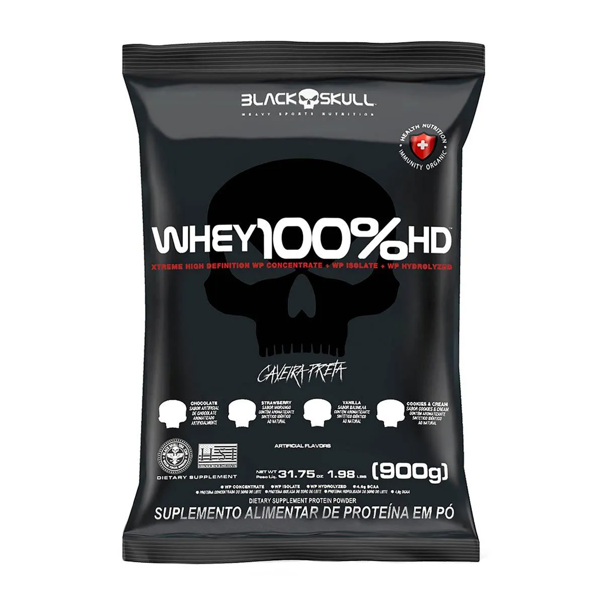 Refil Whey 100% HD Black Skull Morango 900g