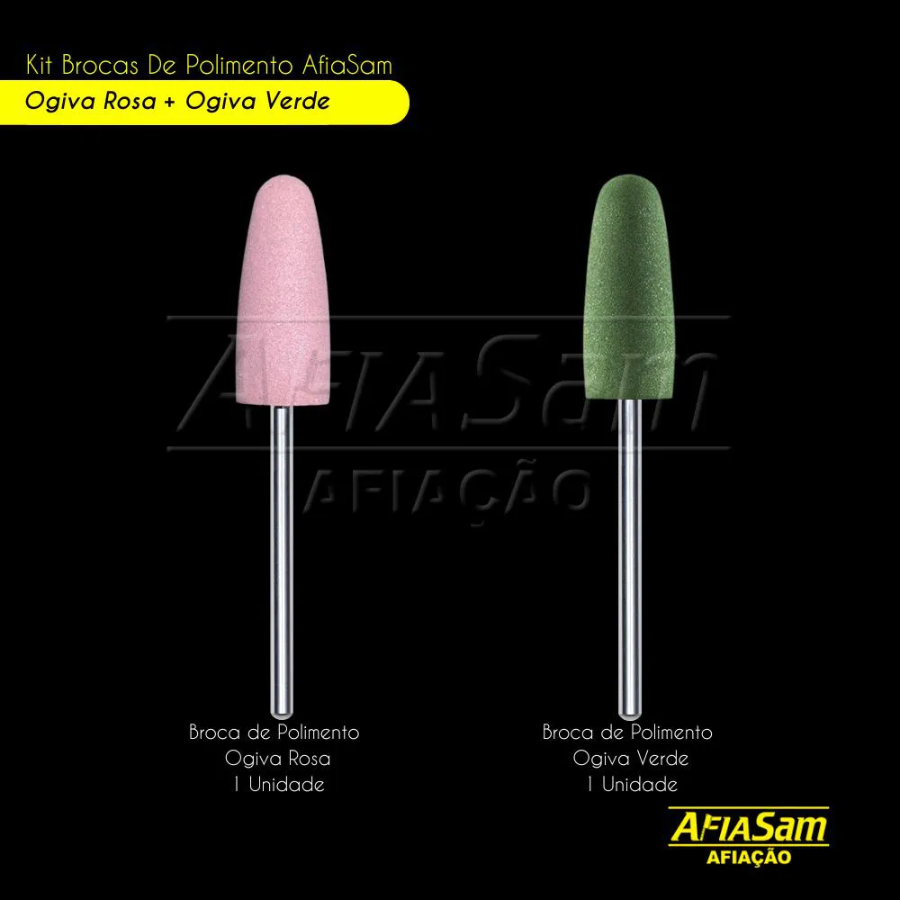 Broca de Polimento Unhas Ogiva Rosa + Ogiva Verde Unhas
