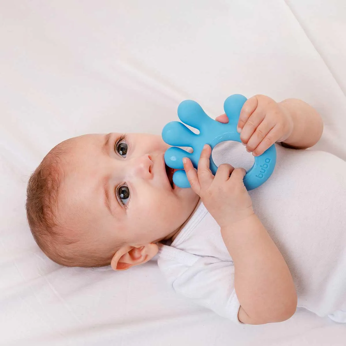 O Mordedor de mãozinha da Buba é perfeito para a primeira dentição do bebê. Macio e anatômico em formato de "mãozinha" com uma cavidade interna, é fácil para o bebê segurar e morder.