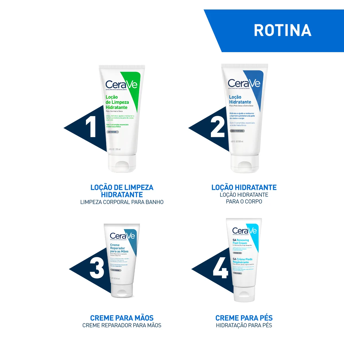 Com alto poder de hidratação, a loção Cerave hidrata e ajuda a restaurar a barreira protetora da Pele do rosto e do corpo. Indicado para pele seca e extrasseca, contém uma textura leve e fluida com ação prolongada. Ideal para uso em áreas extremamente ressecadas, a loção contém ceramidas e ácido hialurônico que promovem uma hidratação intensa, além de ajudar na redução da flacidez.