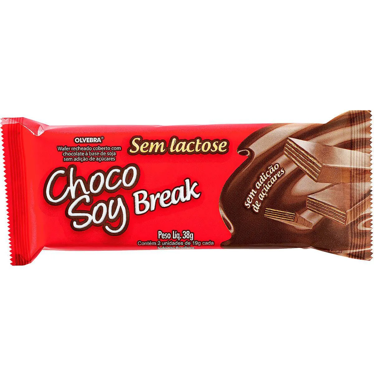O Choco Soy Break é um wafer recheado e coberto com chocolate sem lactose. Ele ainda é livre de gordura trans, colesterol, lactose, não possui adição de açúcar e, também, não contém glúten.