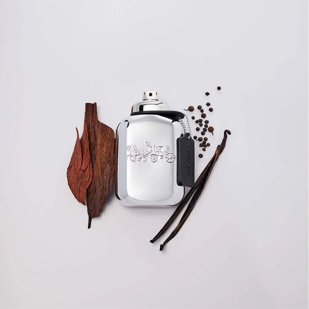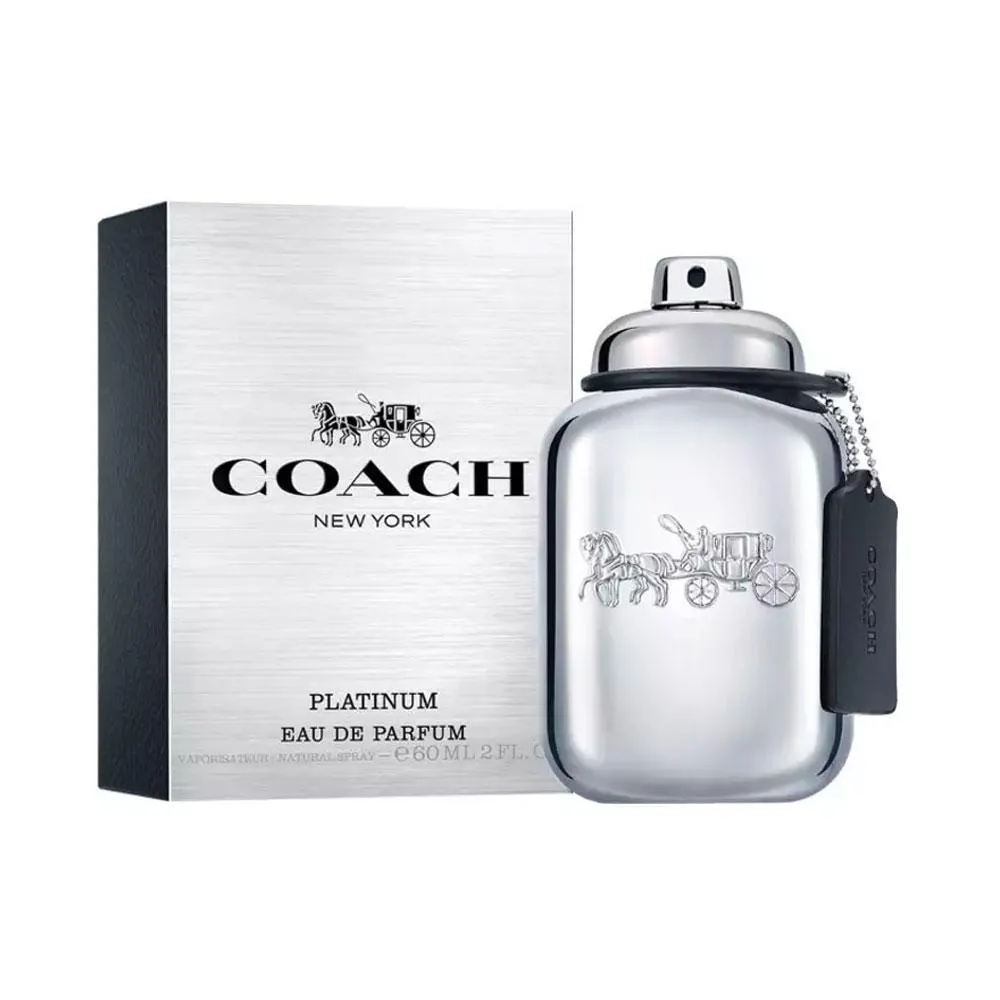 Coach Platinum é uma fragrância distinta que fala com um homem corajoso, ousado e magnético. Abre com um coquetel impulsivo de pimenta preta, abacaxi e bagas de zimbro. O início luminoso é rapidamente contrastado pela textura ousada de notas amadeiradas refinadas: patchouli e caxemira. Enquanto uma faceta floral masculina surge da sálvia e do gerânio juntos, uma névoa de couro de baunilha aquece tudo, criando uma assinatura quente, sensual e elegante.