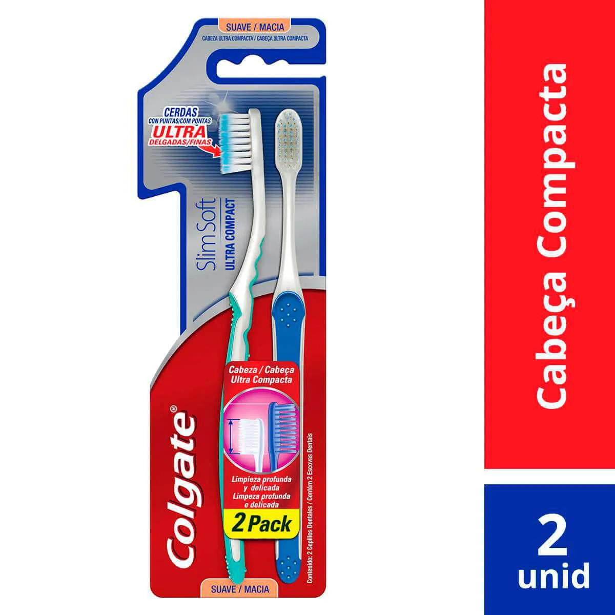 Escova de Dente Colgate Slim Soft Ultra Compact com 2 unidades