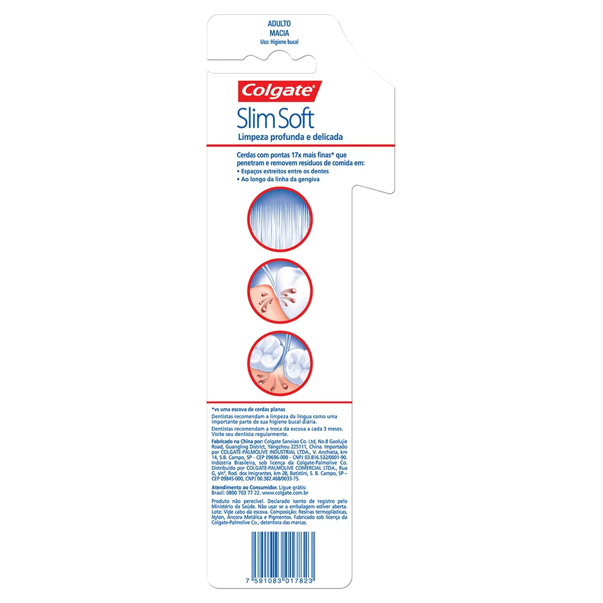 É indicada para limpeza profunda dos dentes e da linha abaixo da gengiva. Produzido com tecnologia de ponta e estudos feitos em laboratório, Colgate Slim Soft Ultra Compact garante a Higienização dos seus dentes de forma mais eficaz, com cerdas suaves e macias que não machucam a boca, ideal para quem sofre com gengivite (inflamação da gengiva).