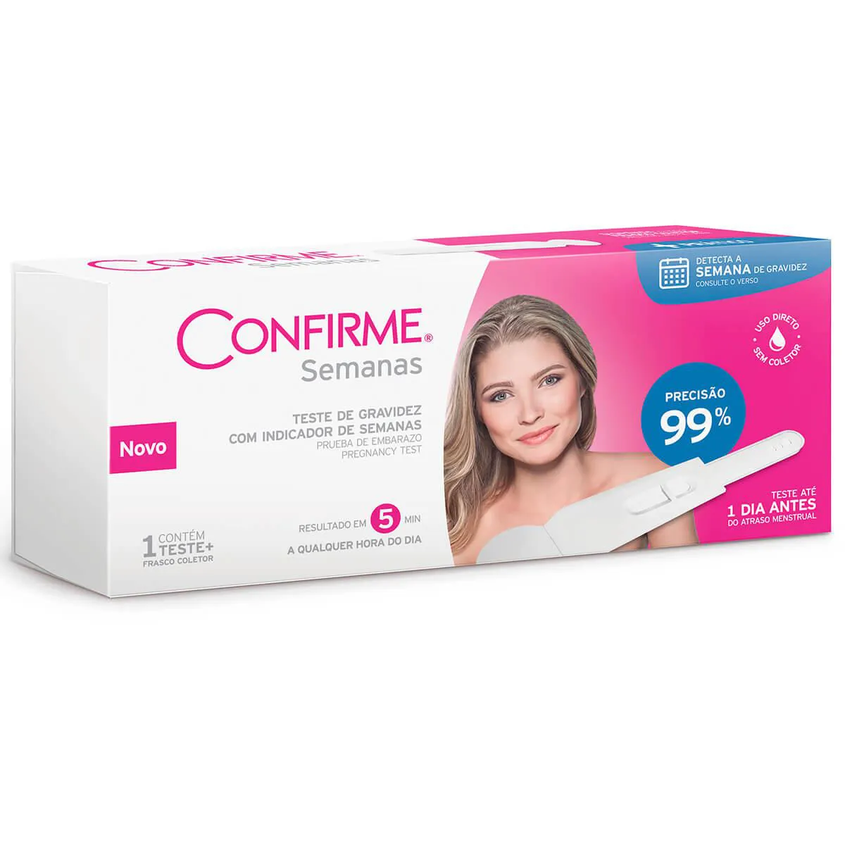 O Confirme Semanas é um teste de gravidez rápido e com 99% de precisão. Possui um visor de resultado, que vai apontar se você está grávida ou não e também traz um indicador de semanas aproximado da concepção da sua gravidez, se 1 a 2, 2 a 3, 3 ou mais semanas.