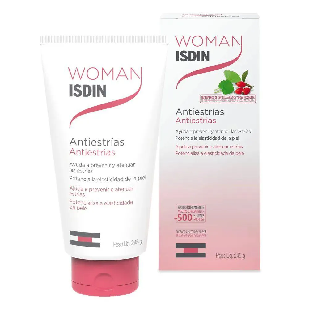 Agora, com a nova embalagem, novo posicionamento e mesma fórmula, a marca abrange a mulher em todas as fases da vida. Woman ISDIN Antiestrias é o hidratante que previne e reduz estrias recentes e potencializa a elasticidade da Pele. Estimula a síntese de colágeno e elastina, hidrata intensamente e possui rápida absorção. Woman ISDIN Antiestrias contém Centella asiática, Óleo de Rosa Mosqueta, Glicerina, Vitamina E, entre outros ativos de origem natural.