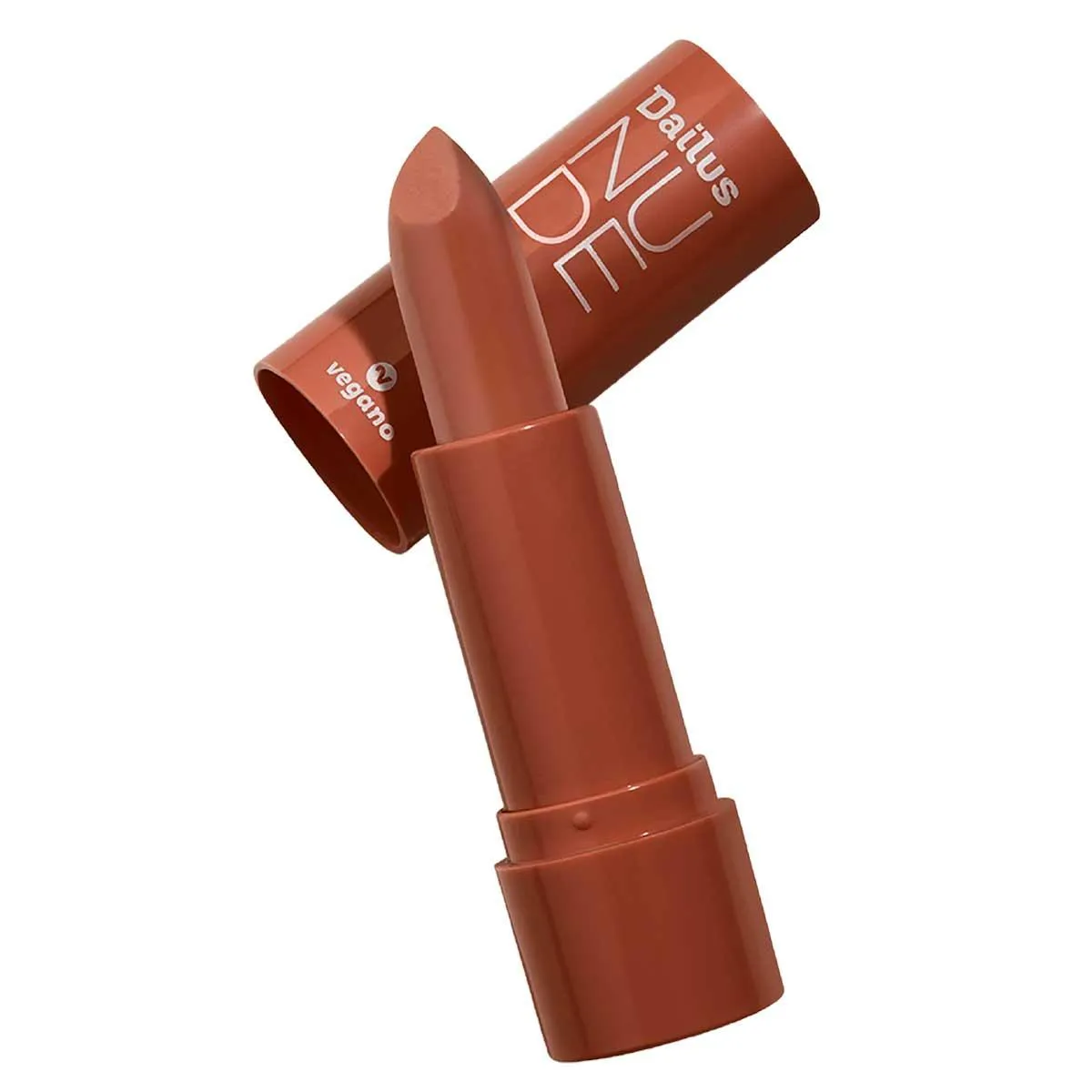 Batom Dailus Nude tem com acabamento superbrilho, fórmula vegana e textura leve e cria um efeito translúcido nos lábios. Longa duração e fácil aplicação.