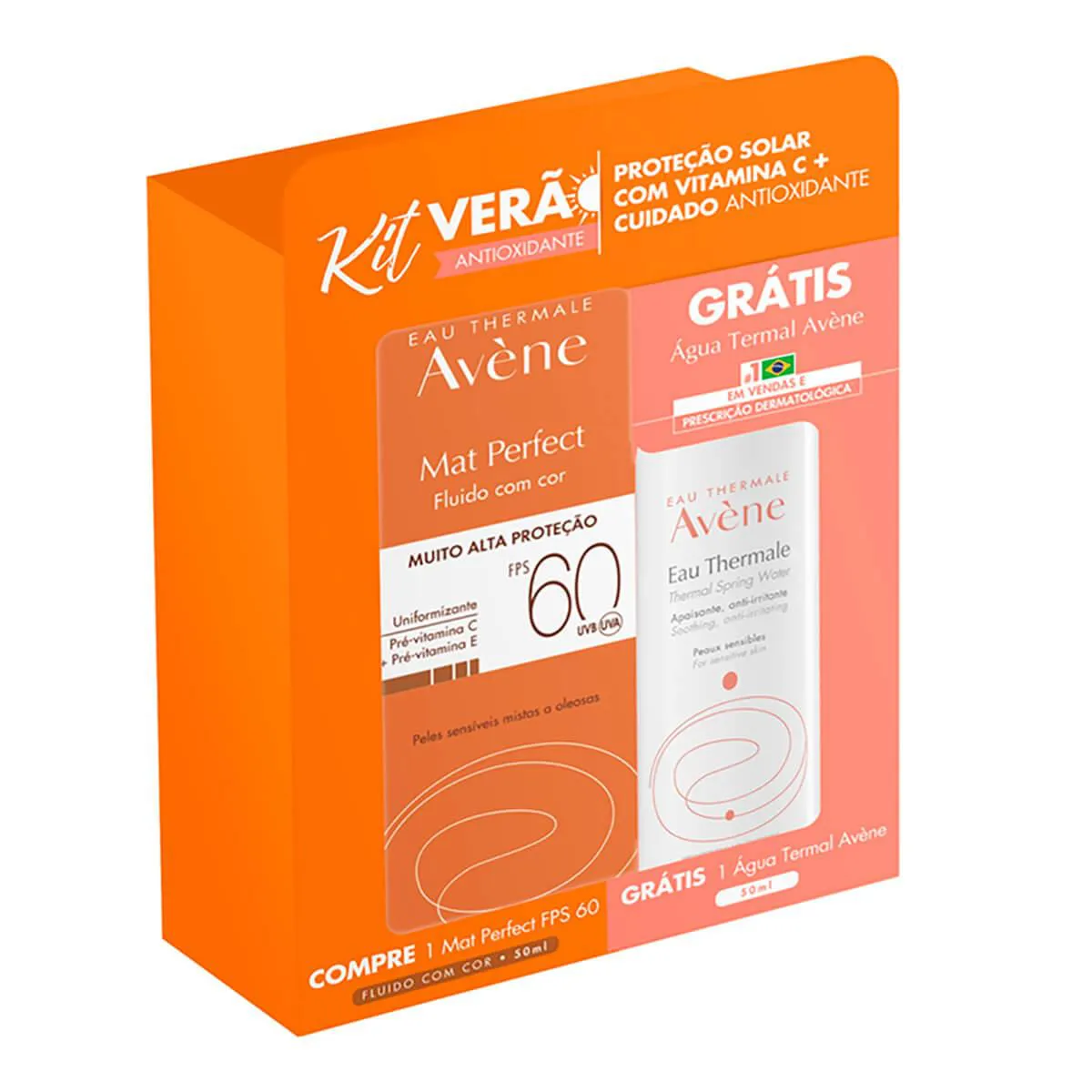 Kit Verão Avène Protetor Solar Facial Mat Perfect Fluido com Cor FPS 60 Uniformizante com 50ml + Água Termal com 50ml