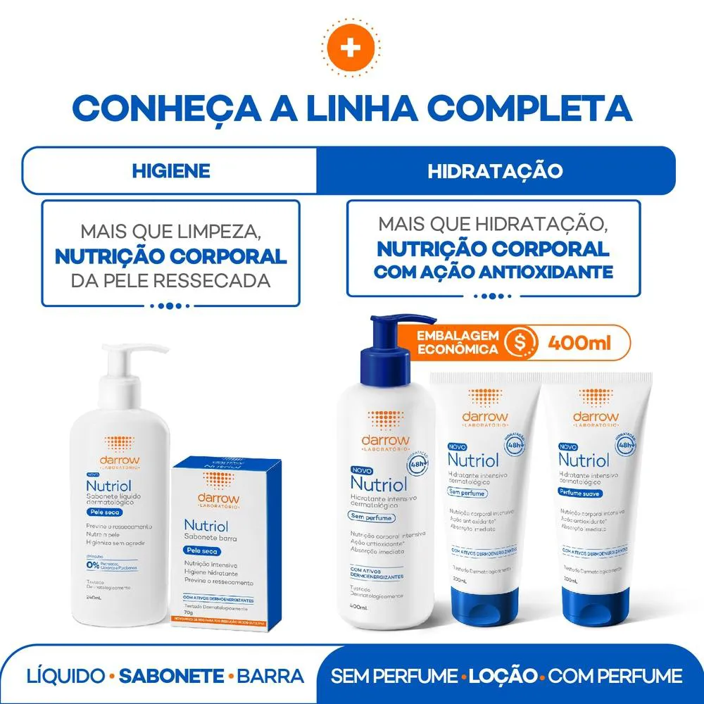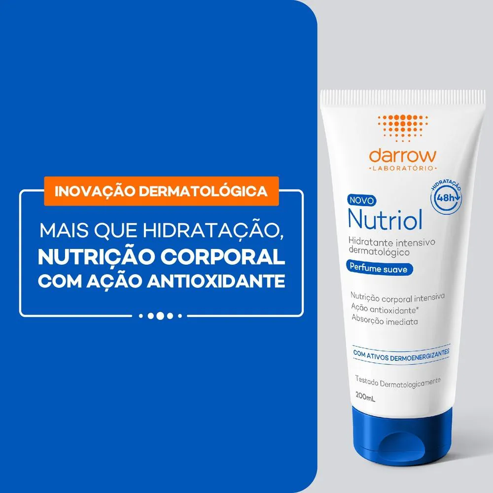 Nutriol é um hidratante corporal intensivo ideal para peles secas e ressecadas, agindo na Pele por até 48 horas. Sua fórmula conta com ativos dermoenergizantes, ação antioxidante, que vai proteger a pele de agressões externas e ação nutritiva, que vai hidratar e nutrir intensamente a pele.