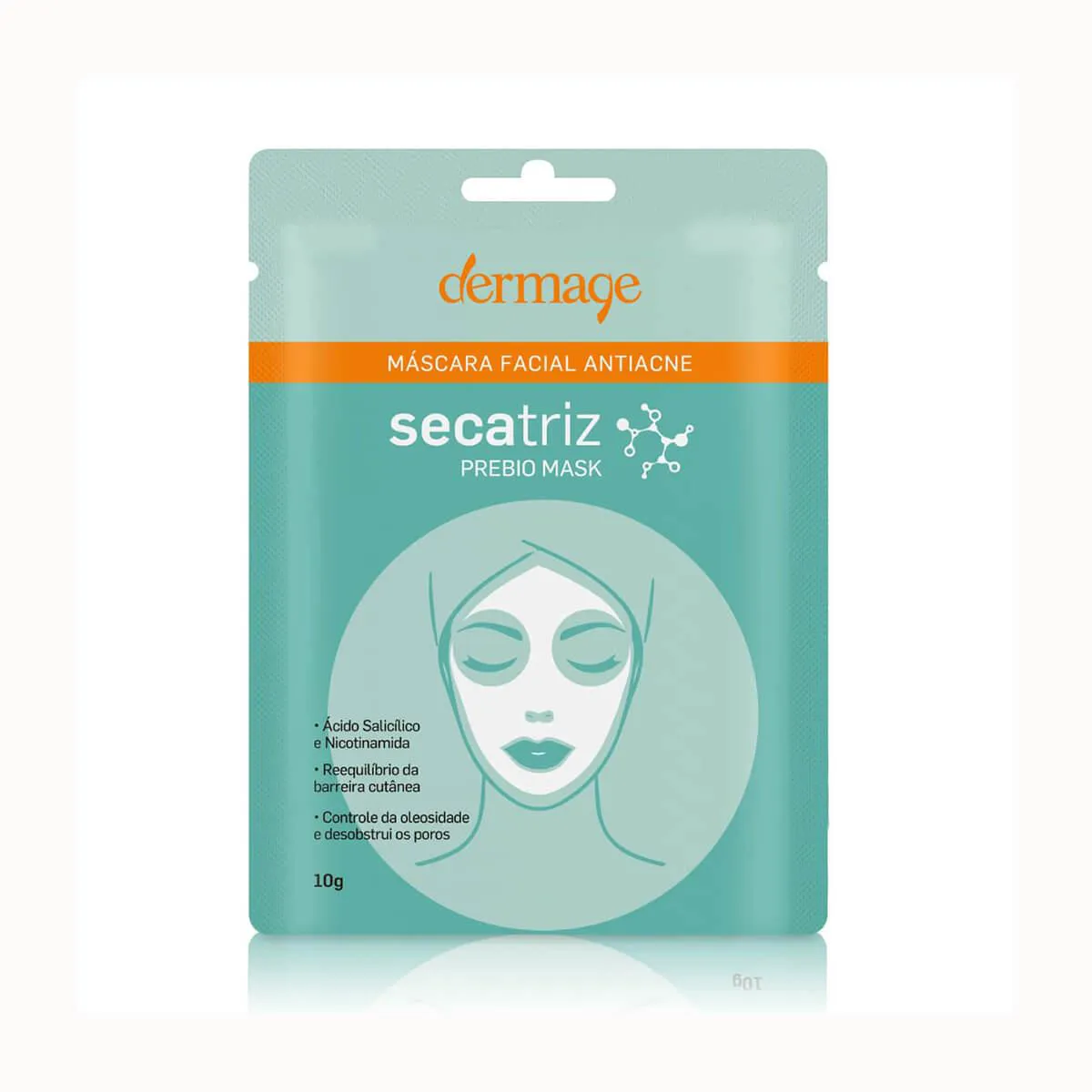 Para que serve: A Máscara Facial Antiacne Dermage Secatriz Prebio é indicada para complementar o Tratamento antiacne e auxiliar no reequilibrio da barreia cutânea, controle de oleosidade e desobstrução dos poros.