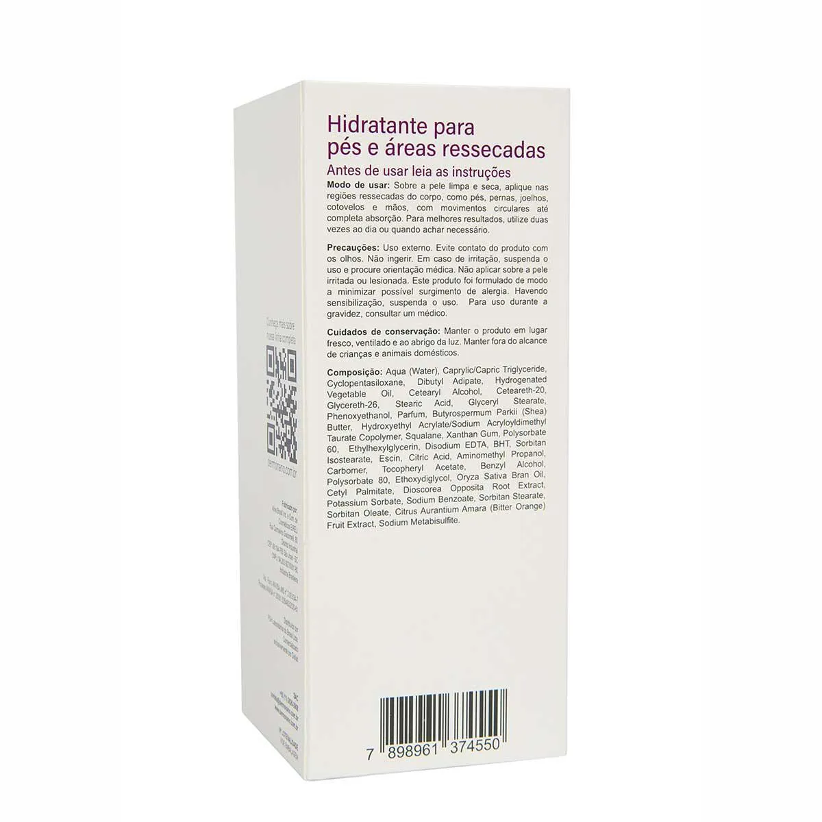 Hidratante para pé e áreas ressecadas, oferece eficácia que auxiliam na profunda hidratação da pele, nutri e protege, melhorando a aparência geral da pele.