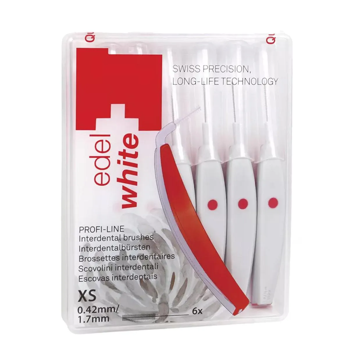 Ideal para promover limpeza eficiente entre os dentes, a escova interdental Edel White EW-ID7 XS 0,42mm reduz a placa bacteriana e ainda protege contra a contaminação, sendo totalmente segura para o uso em implantes, pontes e aparelhos ortodônticos.