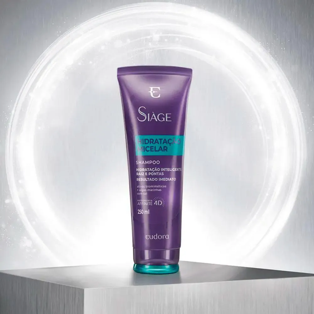 Shampoo Eud Siáge Hidratação Micelar proporciona uma limpeza suave e purifica os fios, sem ressecar, hidratados, brilhantes e cheios de balanço por mais tempo.