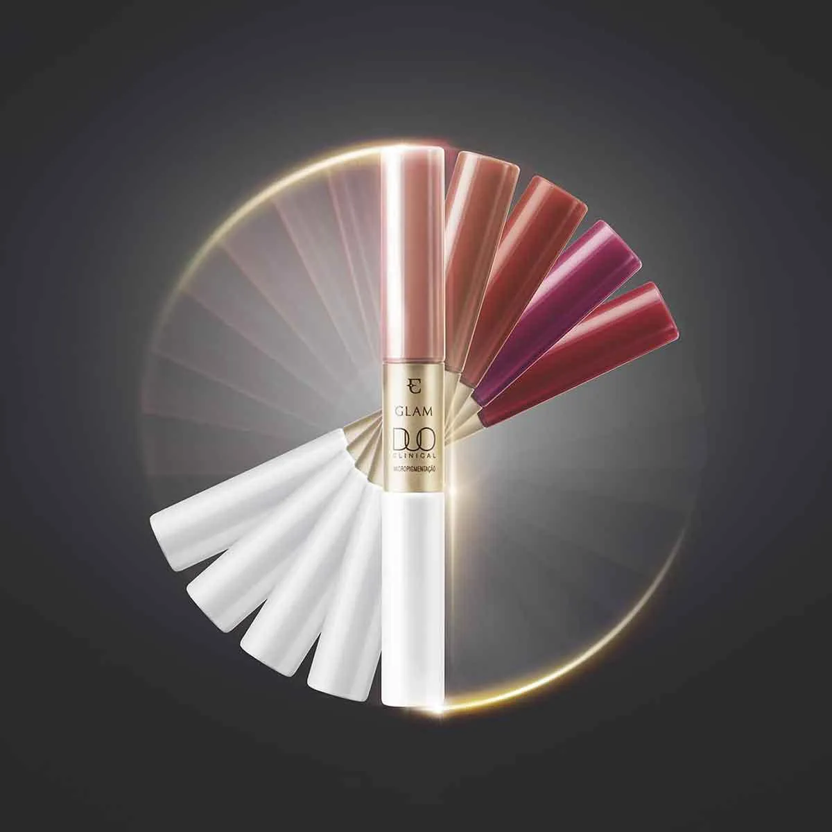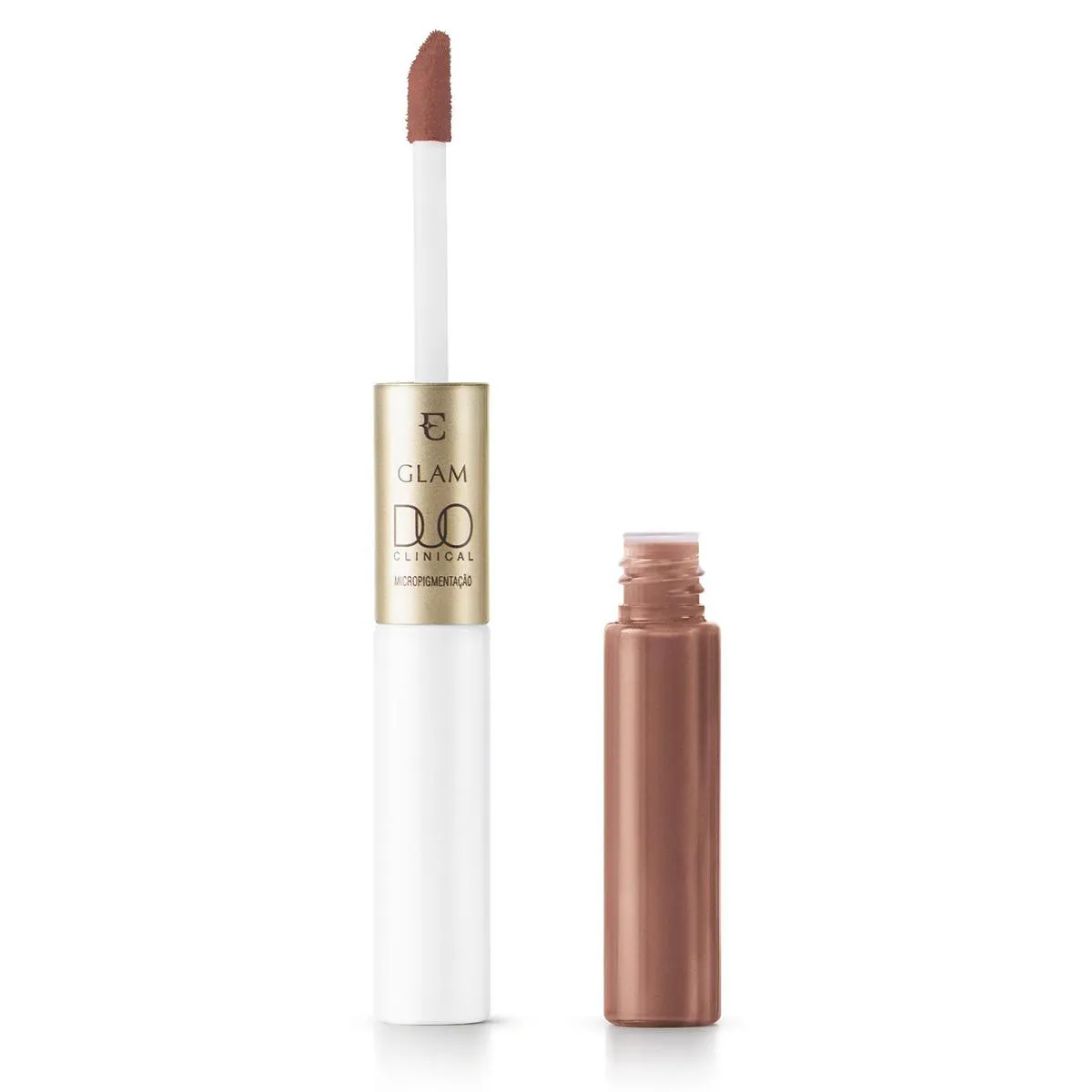Eudora Glam Duo Clinical é um batom líquido com efeito micropigmentação e que oferece 48 horas de hidratação dérmica, além de efeito lifting preenchedor com alta cobertura e longa duração.