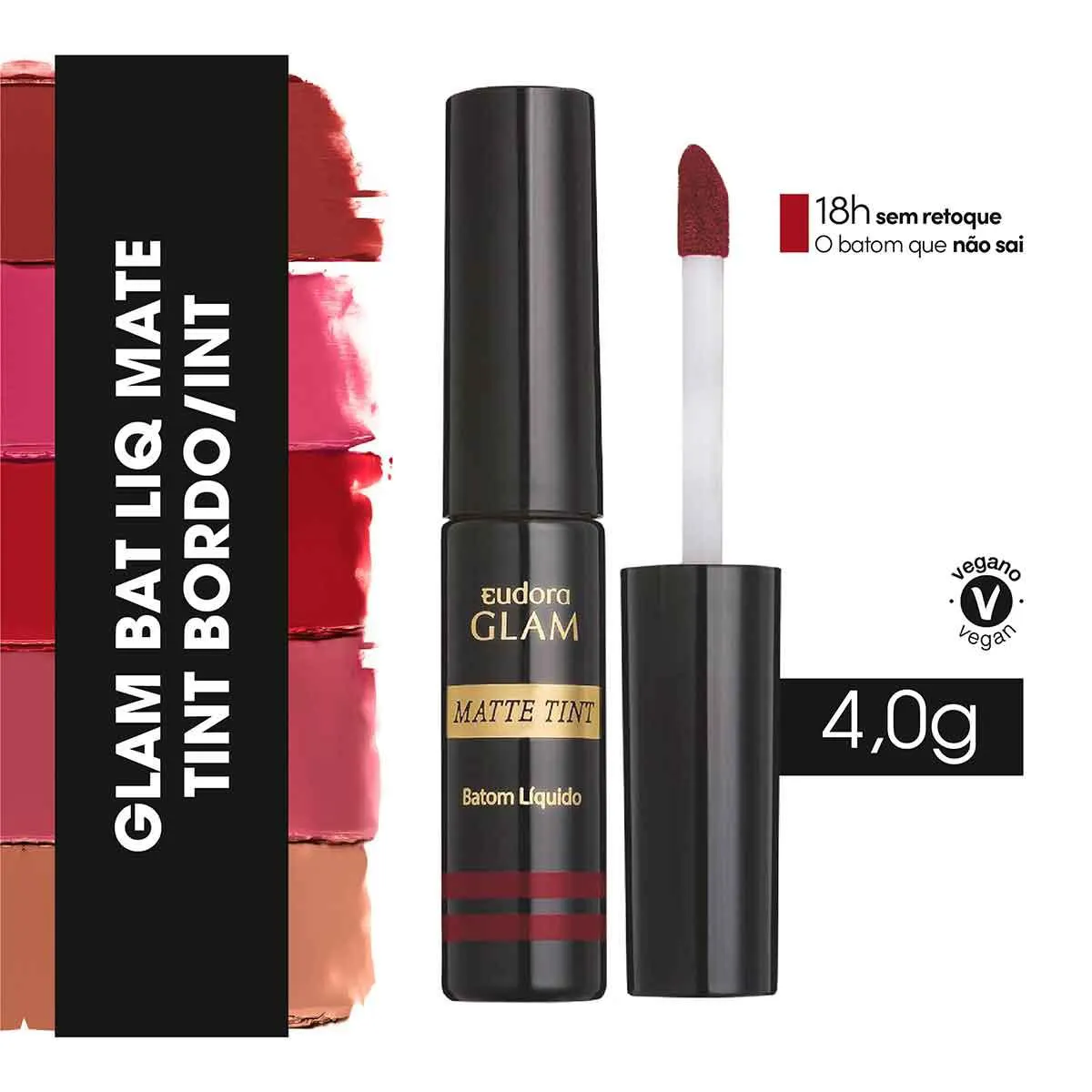 Batom Líquido Eudora Glam Matte Tint Bordô Intenso 4g