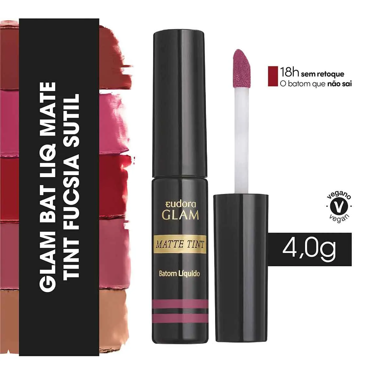 Batom Líquido Eudora Glam Matte Tint Fúcsia Sutil 4g