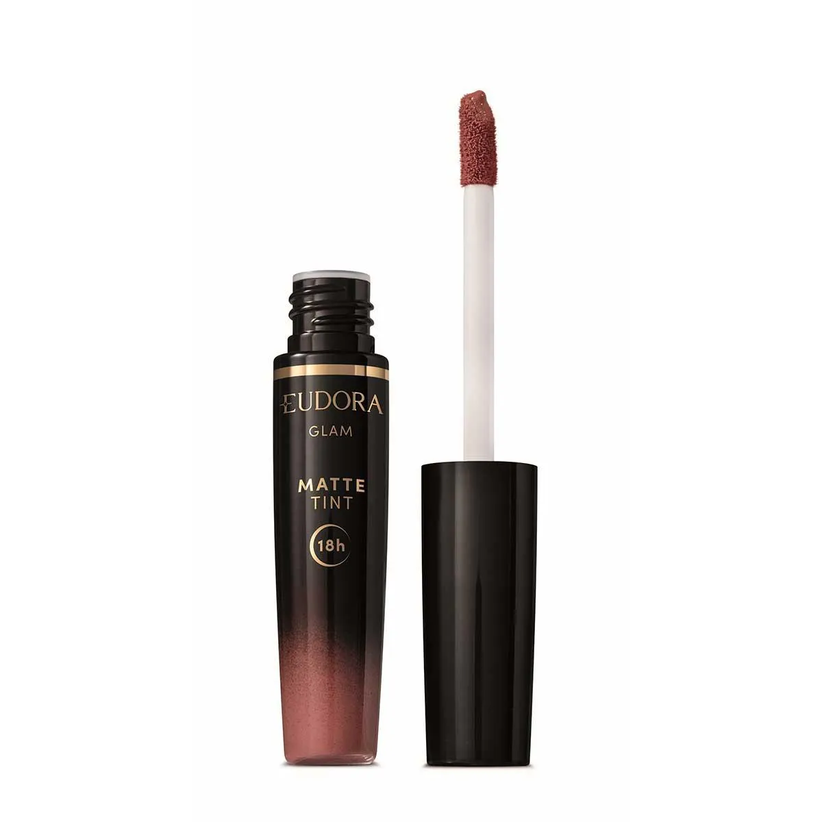 Eudora Glam Matte Tint é um batom líquido com fórmula matte inovadora, que proporciona cor nos seus Lábios por até 18 horas sem retoques. Altamente pigmentado e com cores intensas, ele não marca os vincos dos lábios e não borra durante o uso, além de contar com uma aplicação fácil e prática em apenas um passo. O resultado é maior preenchimento dos lábios com cor e alta cobertura ao longo do dia.