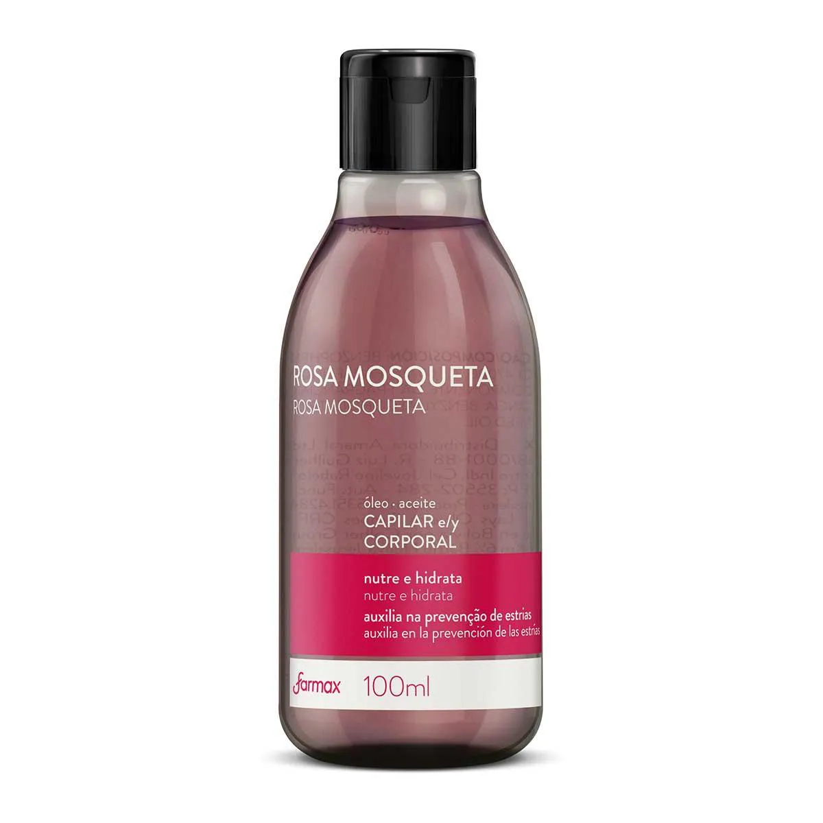 O Óleo Capilar e Corporal Rosa Mosqueta FARMAX possui potente efeito regenerador e emoliente sobre a Pele.