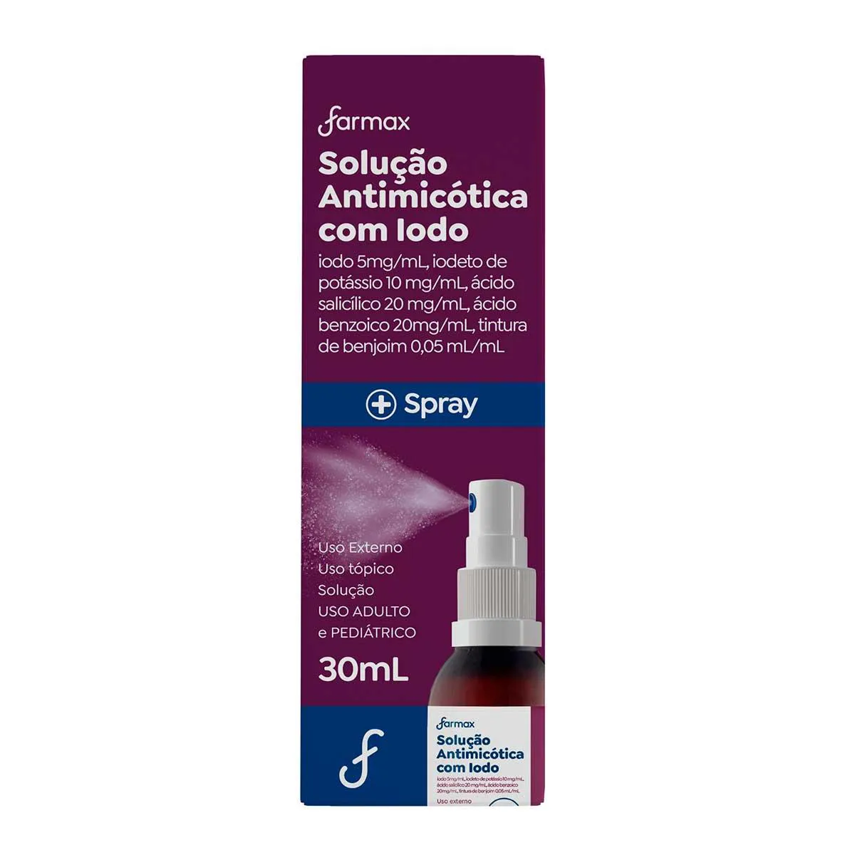 Quais os benefícios do antimicótico com iodo farmax solução tópica spray 30ml?
