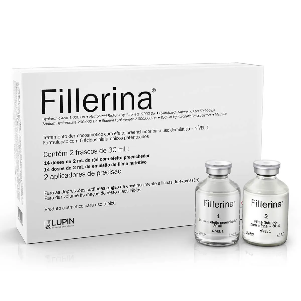 O que é: Fillerina possui 6 moléculas de ácido hialurônico, que penetram até camadas mais profundas da Pele. Sua eficácia clínica foi comprovada em estudos científicos, tendo como resultados suavização de rugas e linhas de expressão, efeito plumping labial e efeito lifting com redução da flacidez cutânea.