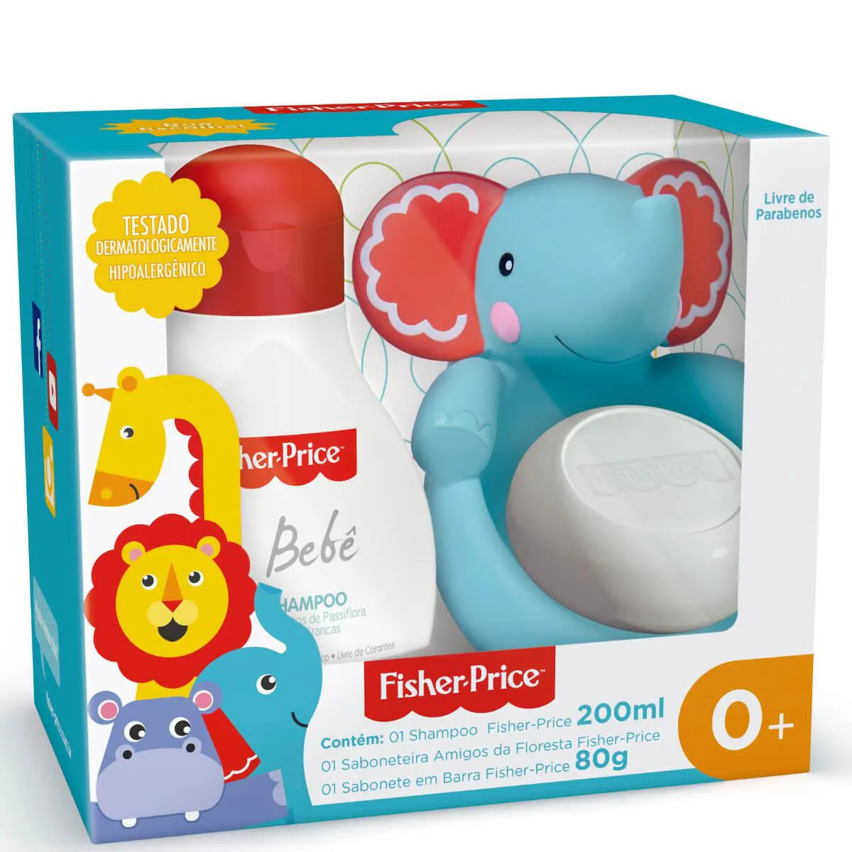 Kit Fisher Price Amigos da Floresta com Shampoo de 200ml + Sabonete em Barra de 80g + Saboneteira
