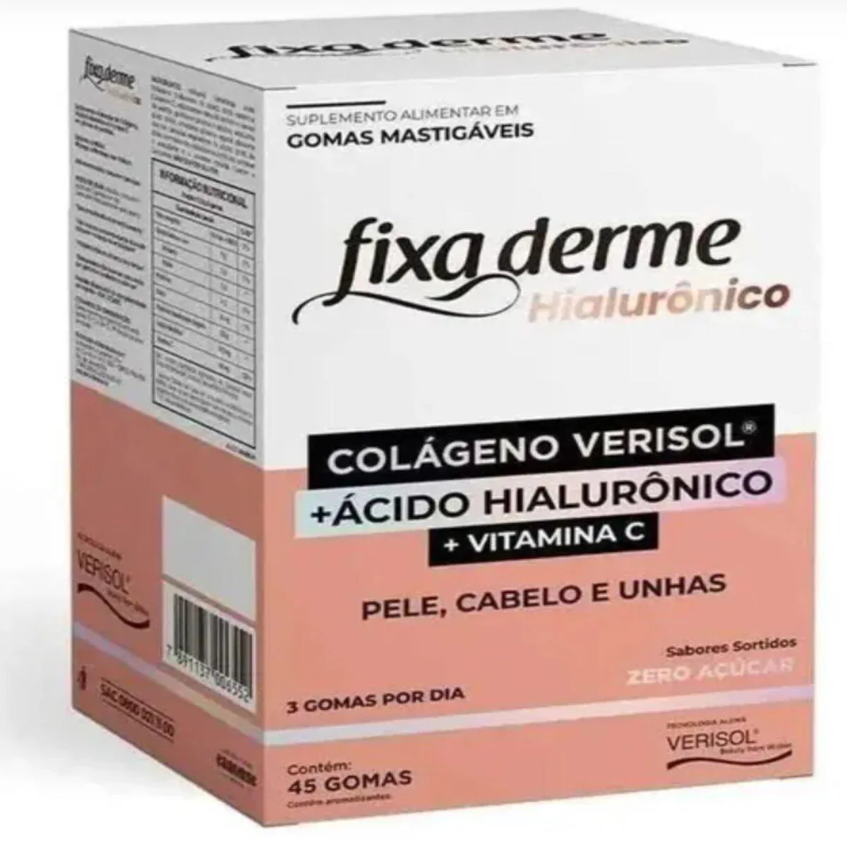 Suplemento Alimentar Fixa Derme Hialurônico + Colágeno + Vitamina C 45 gomas mastigáveis com 15 sachês