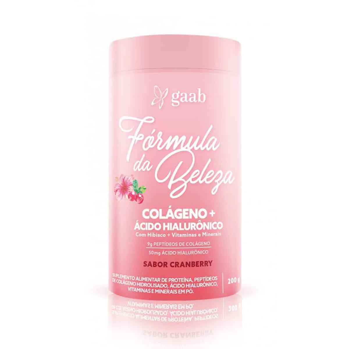 O Gaab Fórmula da Beleza é um suplemento alimentar em pó, formulado com peptídeos de colágeno hidrolisado, ácido hialurônico, hibisco e um mix de 5 vitaminas e minerais.