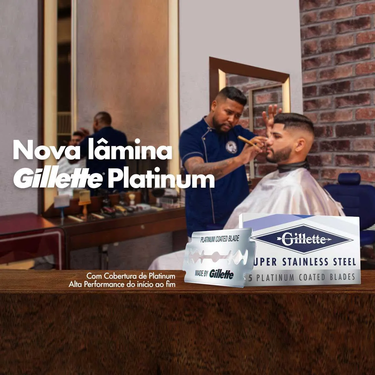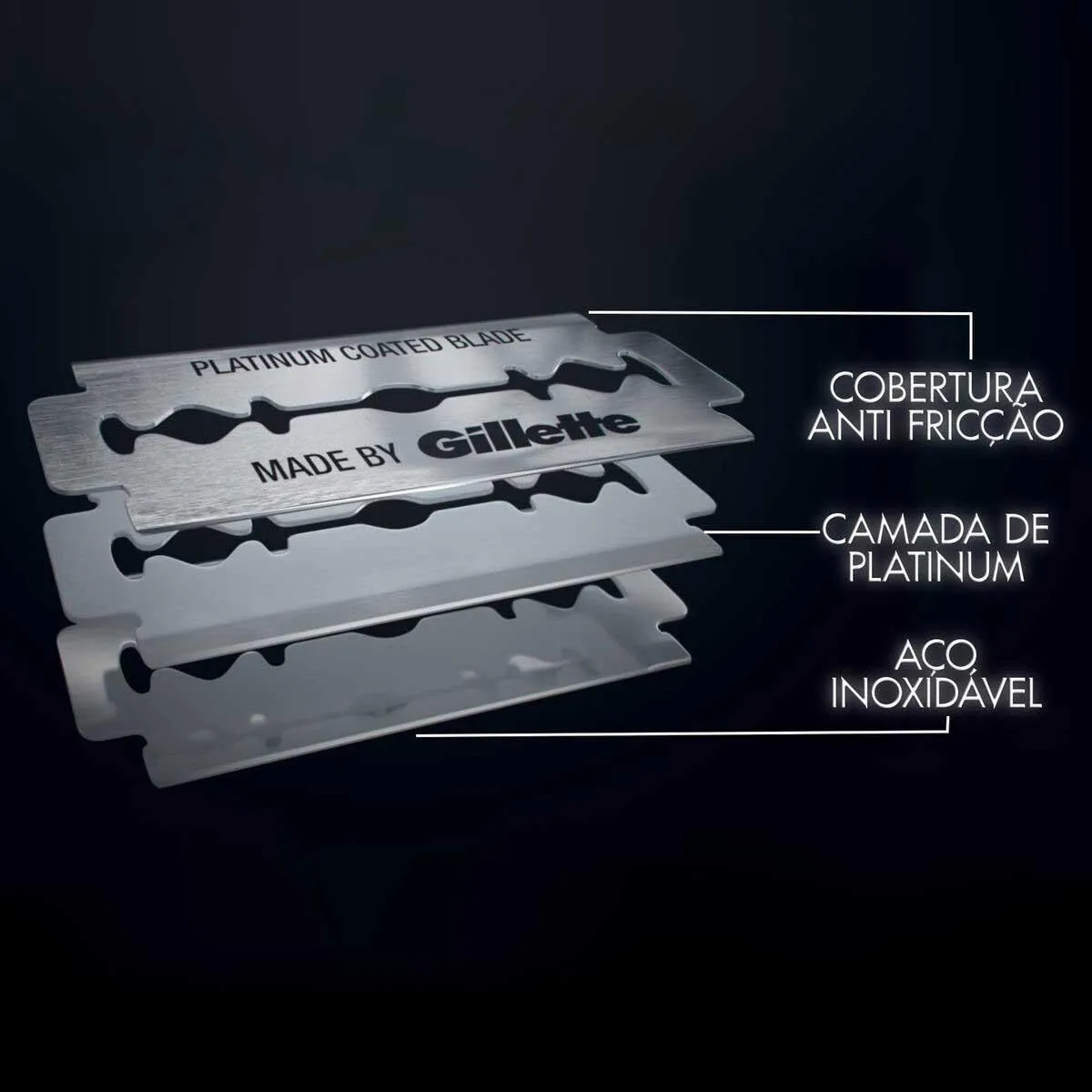 Gillette Platinum é uma lâmina para barbear com camada extra de revestimento de cromo platinum. Ela oferece mais precisão no barbear, além de ser muito mais resistente e durável do que as lâminas comuns. Este produto está disponível em embalagem com 5 lâminas.