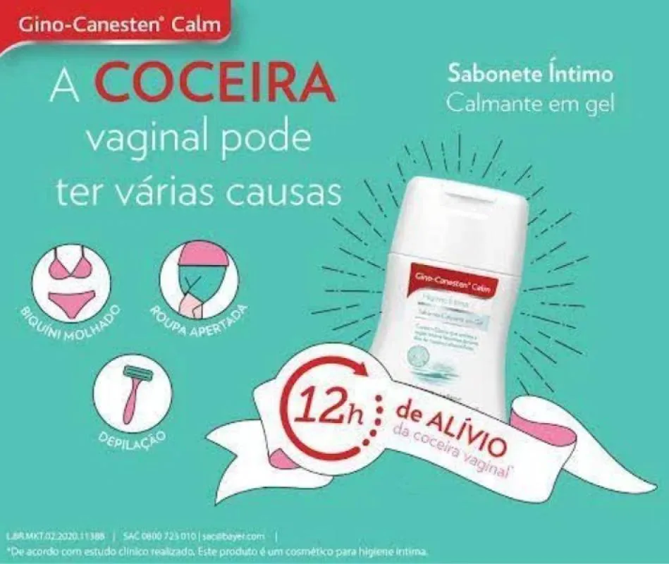 O Sabonete Íntimo Calmante Gino Canesten Calm é indicado para aliviar a coceira vaginal por até 12hs. Sua fórmula é feita com glicina, desenvolvido para acalmar a região íntima durante dias de coceira e desconforto vaginal, higienizando a região íntima, promovendo a sensação de frescor e conforto.