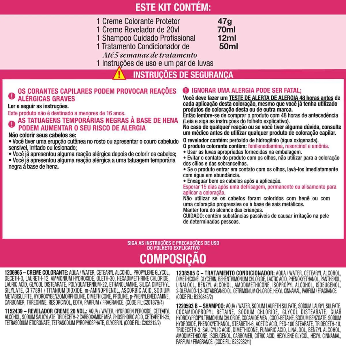 Para que serve: A coloração triplo cuidado, cuida da cor com o creme colorante protetor, do couro cabeludo com o shampoo cuidado profissional e do cabelo com o cuidade milagroso da cor.