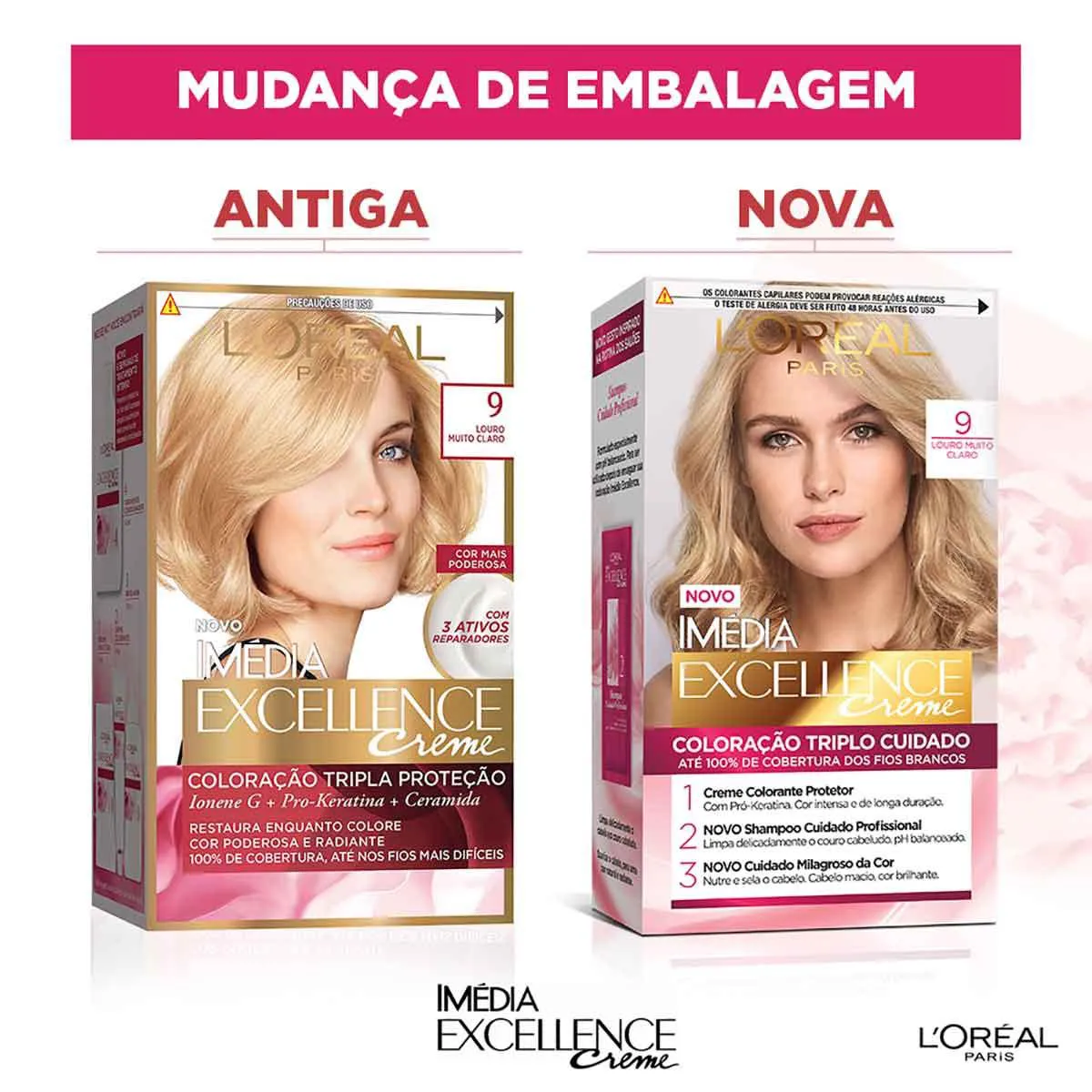 O que é: Imédia Excellence é a coloração permanente de L'Óreal Paris, presente há mais de 60 anos no mercado brasileiro. Sempre trazendo inovações e melhores resultados para o seu cabelo, o novo Imédia Excellence é inspirado na rotina dos salões.