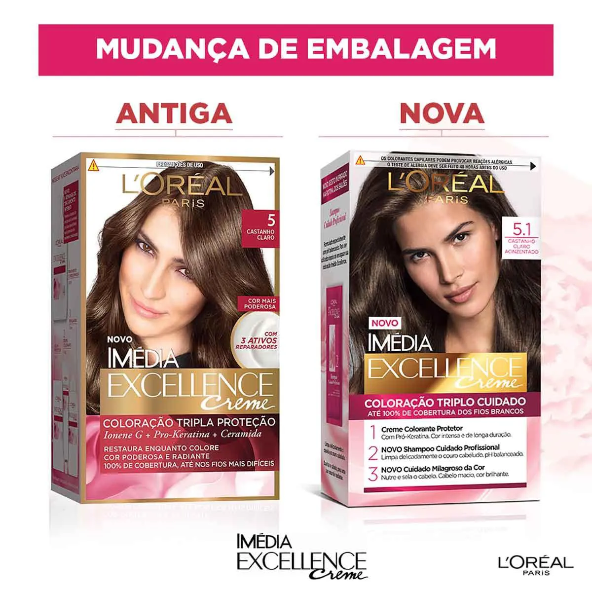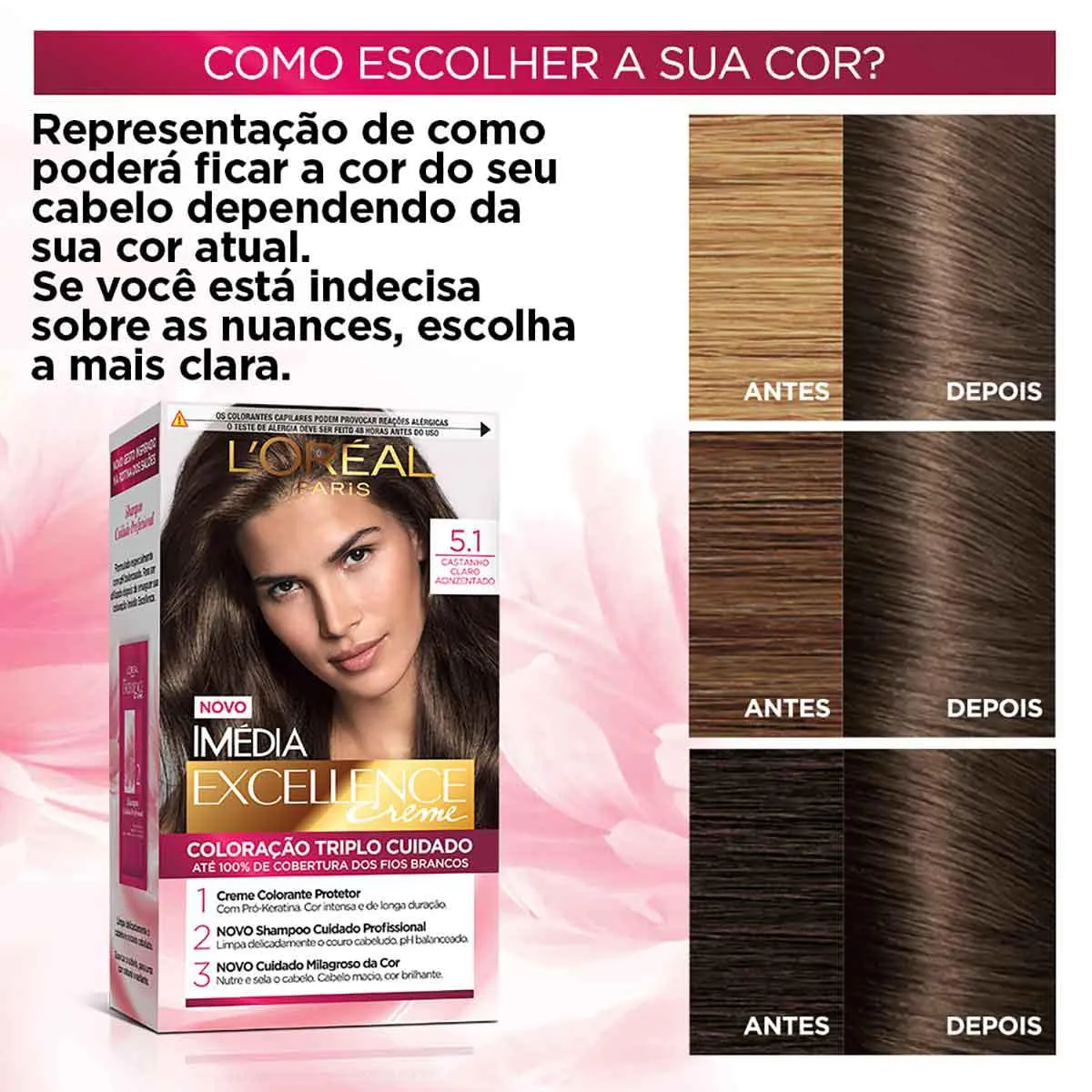 Benefícios e diferenciais da tintura Imédia Excellence Creme 5.1 Castanho Claro Acinzentado