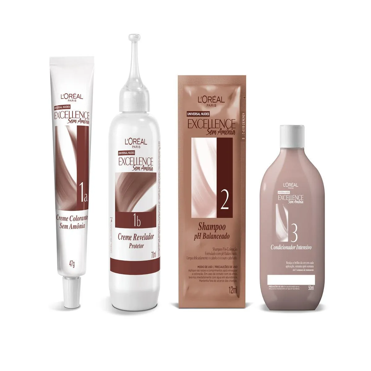 Imédia Excellence Sem Amônia é a primeira coloração permanente sem amônia de L'oréal Paris. Sua fórmula é enriquecida com agentes condicionantes que possui um triplo cuidado profissional, cobrindo até 100% dos fios brancos e garantindo 98% menos quebra, resultando em um cabelo natural e luminoso.