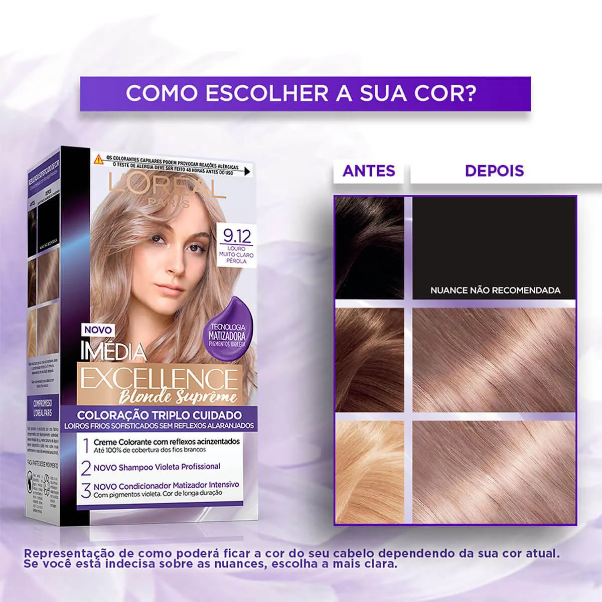 Tintura Permanente Imédia Excellence Blonde Supreme 9.12 Louro Muito Claro Pérola com 1 unidade