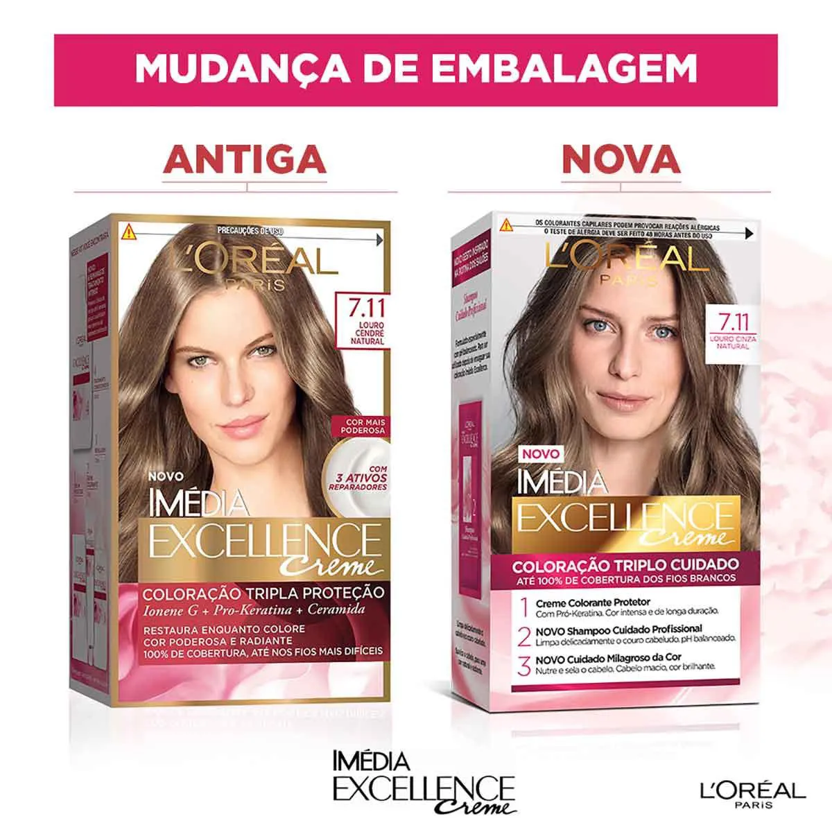 Benefícios e diferenciais da tintura Imédia Excellence Creme 7.11 Louro Cendre Natural