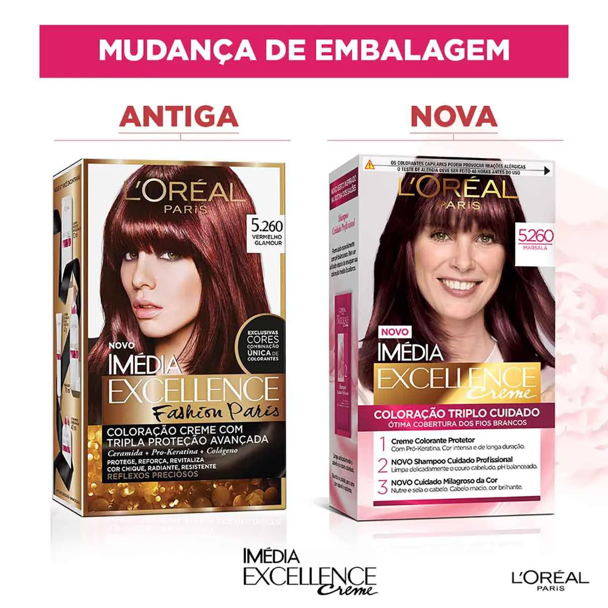 Tintura Permanente Imédia Excellence Creme 5260 Vermelho Glamour com 1 unidade