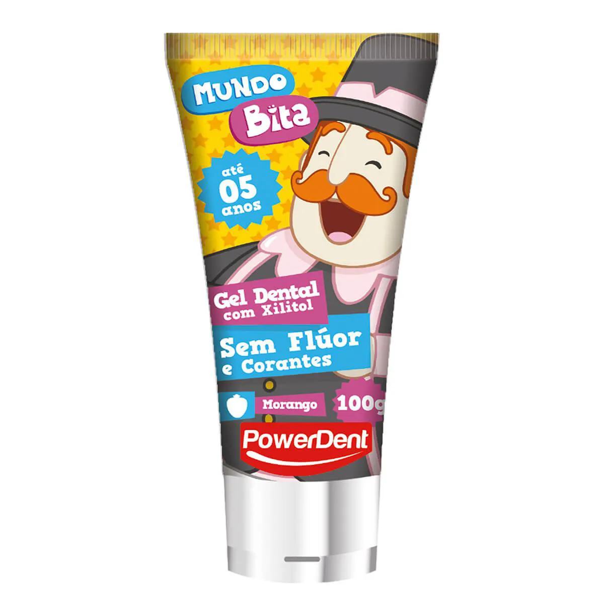 Gel Dental Powerdent Mundo Bita Sem Flúor Sabor Morango com 100g