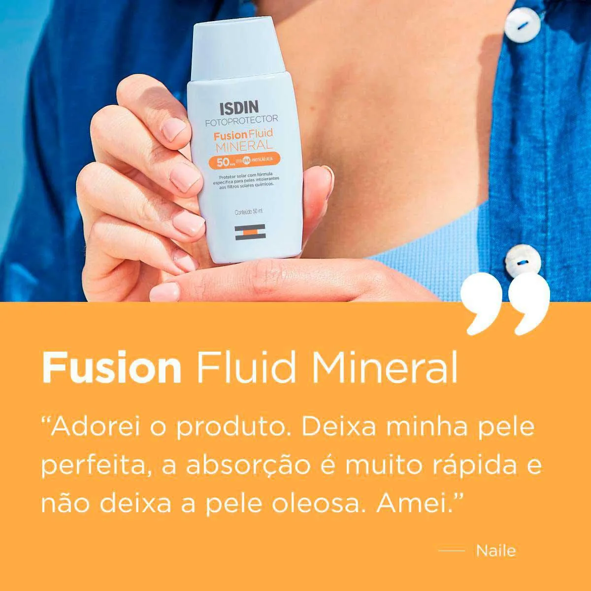 Além de proporcionar alta proteção contra os raios de sol (FPS 50), o protetor solar Isdin Fusion Fluid Mineral também garante hidratação intensa durante a exposição ao sol.