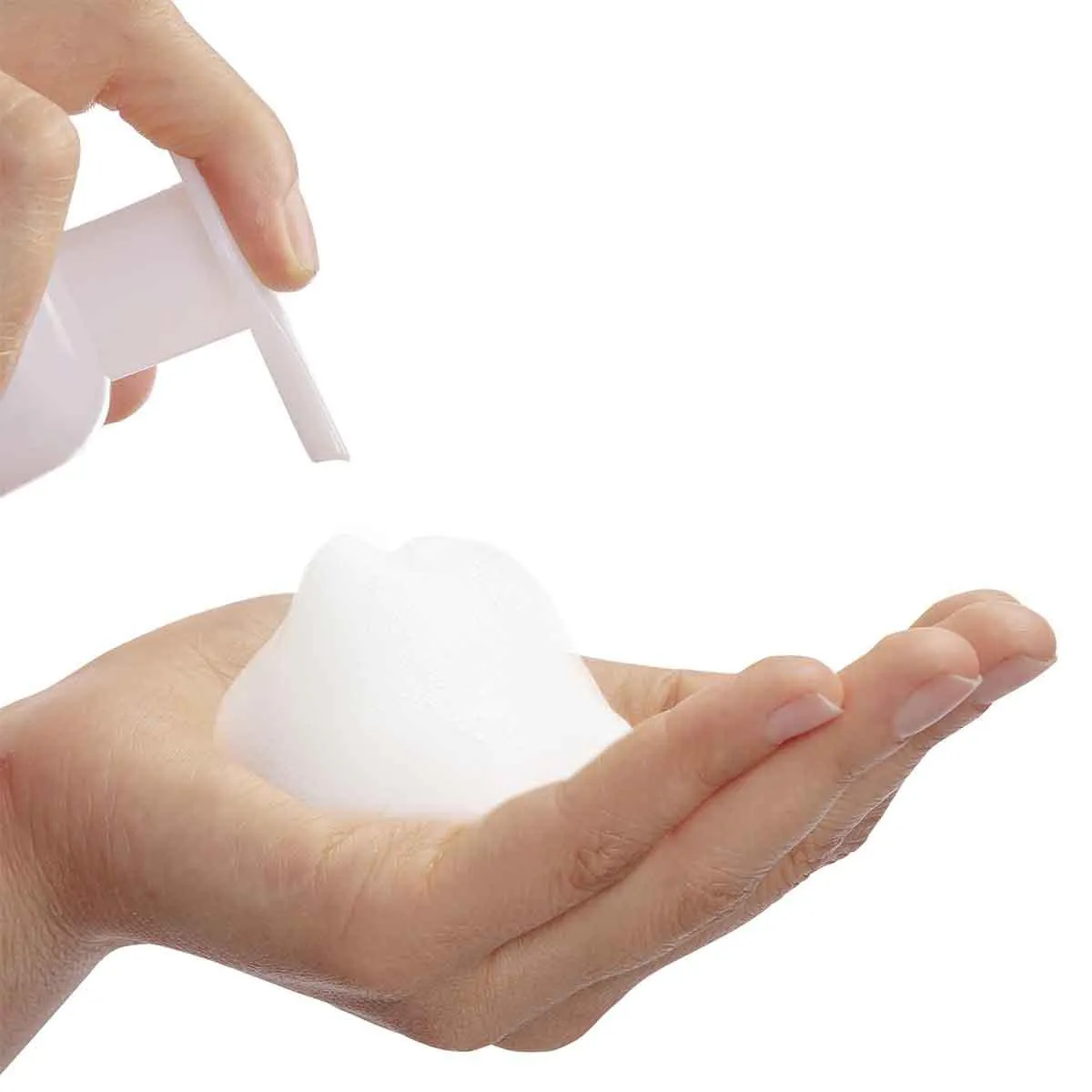- Umedeça as mãos, aplique o sabonete líquido em espuma e massageie a pele suavemente.