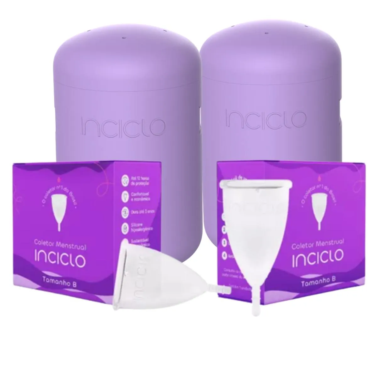 KIT INCICLO 2 COLETORES MENSTRUAL + 2 CÁPSULAS ESTERILIZADORA